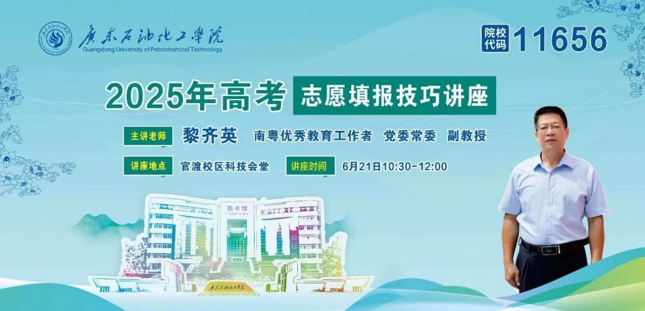 活动当天上午10时30至12时,广东石油化工学院党委常委黎齐英副教授,将于广油官渡校区科技会堂为考生和家长带来名为“2025年高考志愿提报技巧”的专题讲座。讲座上,他将详细为大家介绍录取批次设置、专业组平行志愿投档方式、院校专业组选择、院校退档常见原因等问题,同时,黎齐英副教授还将告诉大家如何从大学招生章程中了解重点内容,并提供高考志愿填报的具体建议。