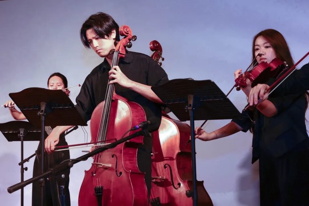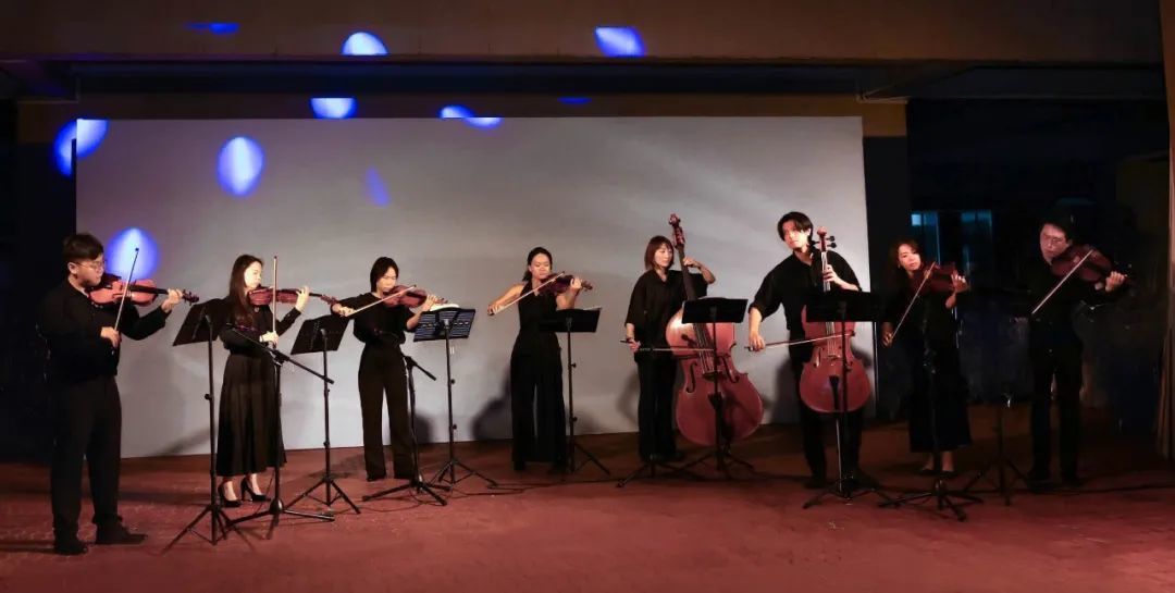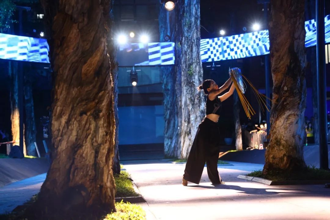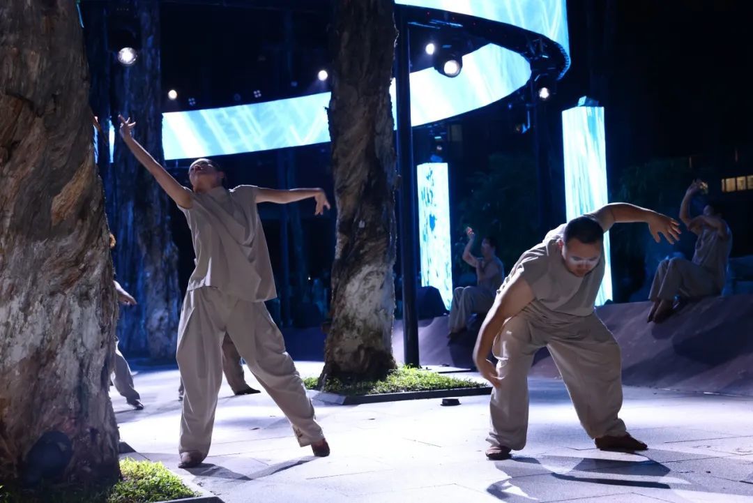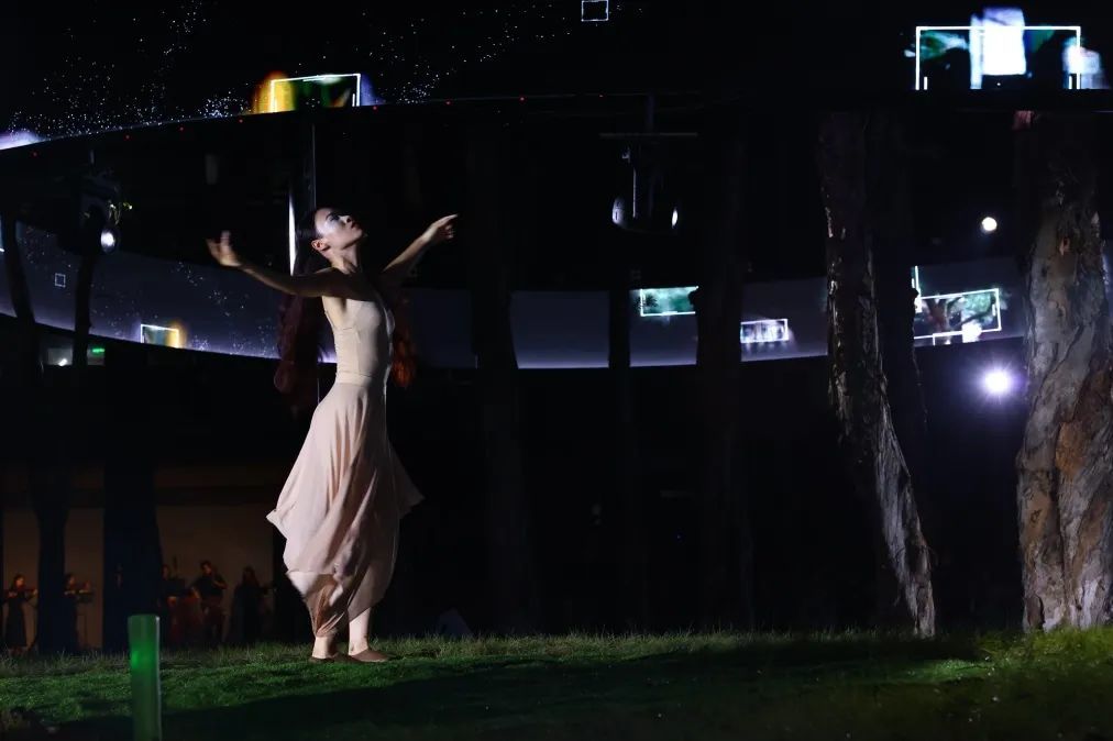 智能体不断学习进化,对广州美术学院的七秩积淀进行深度扫描与解析,读取艺术数据。弦乐与三维影像对话,人声节奏与光影矩阵同频,舞者与数据粒子共舞,机械飞鸟突破虚拟与现实的边界,穿梭于整个数字校园,催生新的艺术共生体。
