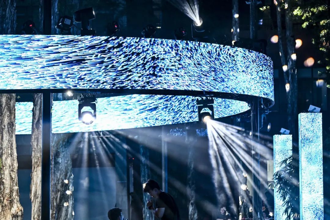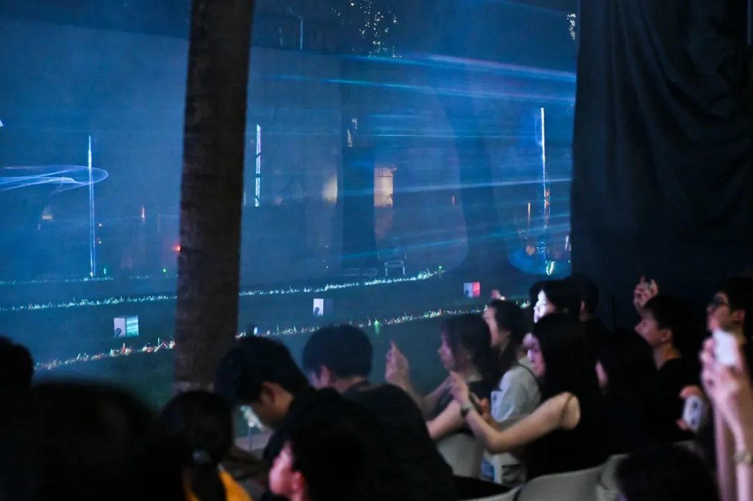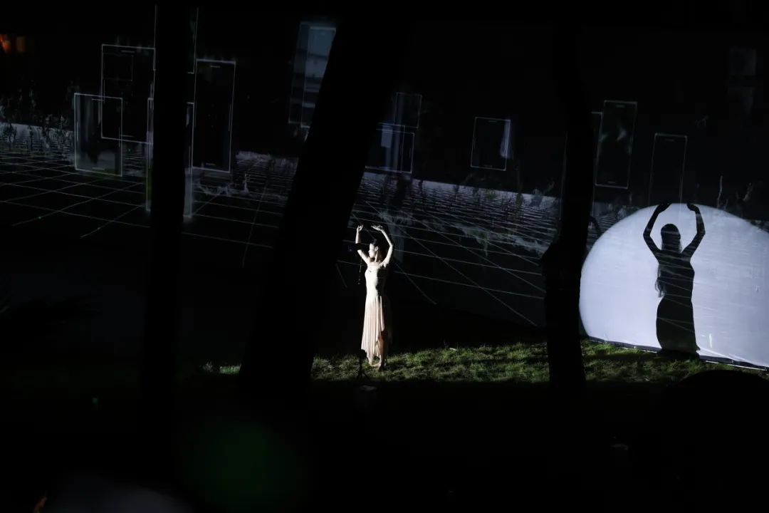 序幕展现了智能体的初始状态。遍布现场的高清摄像头作为智能体感知世界的瞳孔,实时捕捉现场画面,将动态信息即时转化为光影、色彩,呈现于幕布之上。观众通过智能体的“观察-学习-生成”行为,传递情感算法,与现场产生联结,逐渐构成展演的剧场生态。