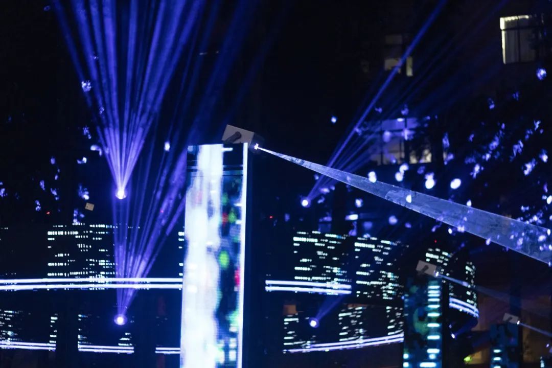 第一幕呈现了智能体多次尝试接入美院艺术数据并完成同步的过程。实时数据流在三维空间解构重组为“声”“光”“电”,激光矩阵穿透动态光幕,在声场中编织出全息影像,宣告共生剧场的诞生。