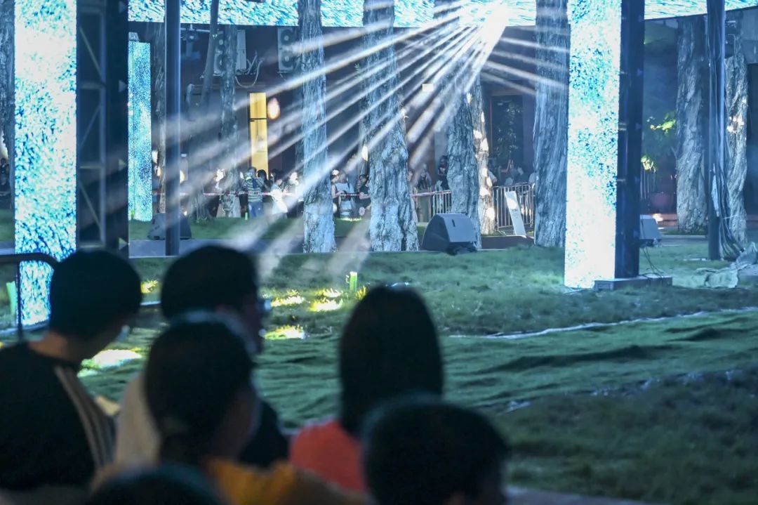 6月20日,2025广州美术学院毕业季研究生艺术展演——“CO-EVO”智能体互动剧场在昌岗校区中心花园顺利举行。广州美术学院党委书记林蓝,院长范勃,副院长蔡拥华、李金水、李勇,学校各职能部门、二级学院相关负责人出席了本次活动。师生代表及2025届毕业生共同见证了这场艺术与科技交融的视听盛宴。
