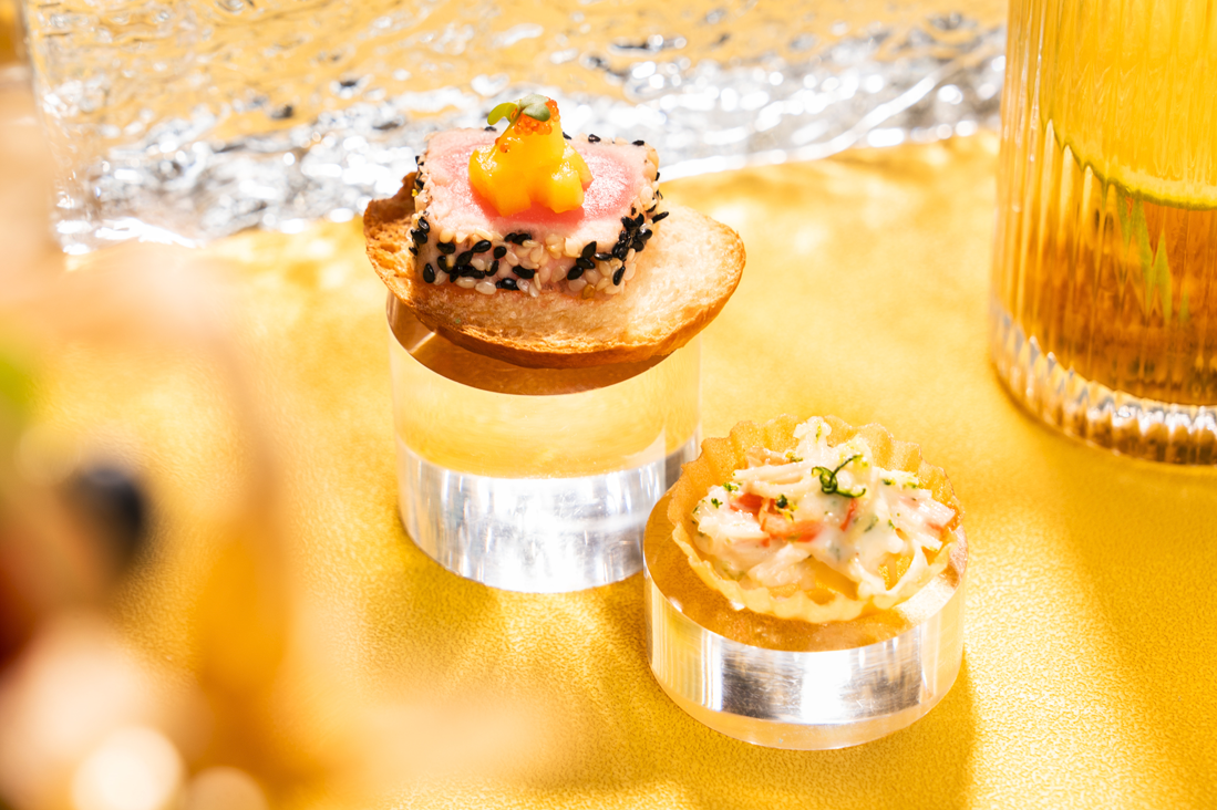 套餐的三款咸点也超有食欲,芥味蟹肉挞带着芥末的清爽辛香,搭配鲜甜蟹肉,挞皮酥脆内馅饱满,芝麻金枪鱼脆饼用香脆饼底托着裹满芝麻的金枪鱼,咸香中带着坚果香气,贝柱菠萝莎莎则把鲜嫩贝柱和酸甜菠萝丁拌在一起,清爽解腻,每一款咸点都层次丰富,妥妥的下午茶点睛之选。