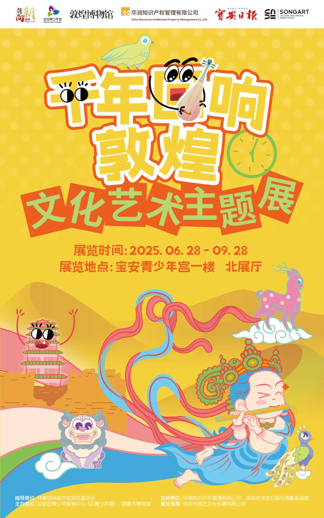 展览由共青团深圳市宝安区委员会指导,宝安区青少年服务中心(区青少年宫)、敦煌市博物馆主办,华润知识产权管理有限公司、深圳市宝安日报社湾酷实验室支持,深圳市颂艺文化传播有限公司策划举办。