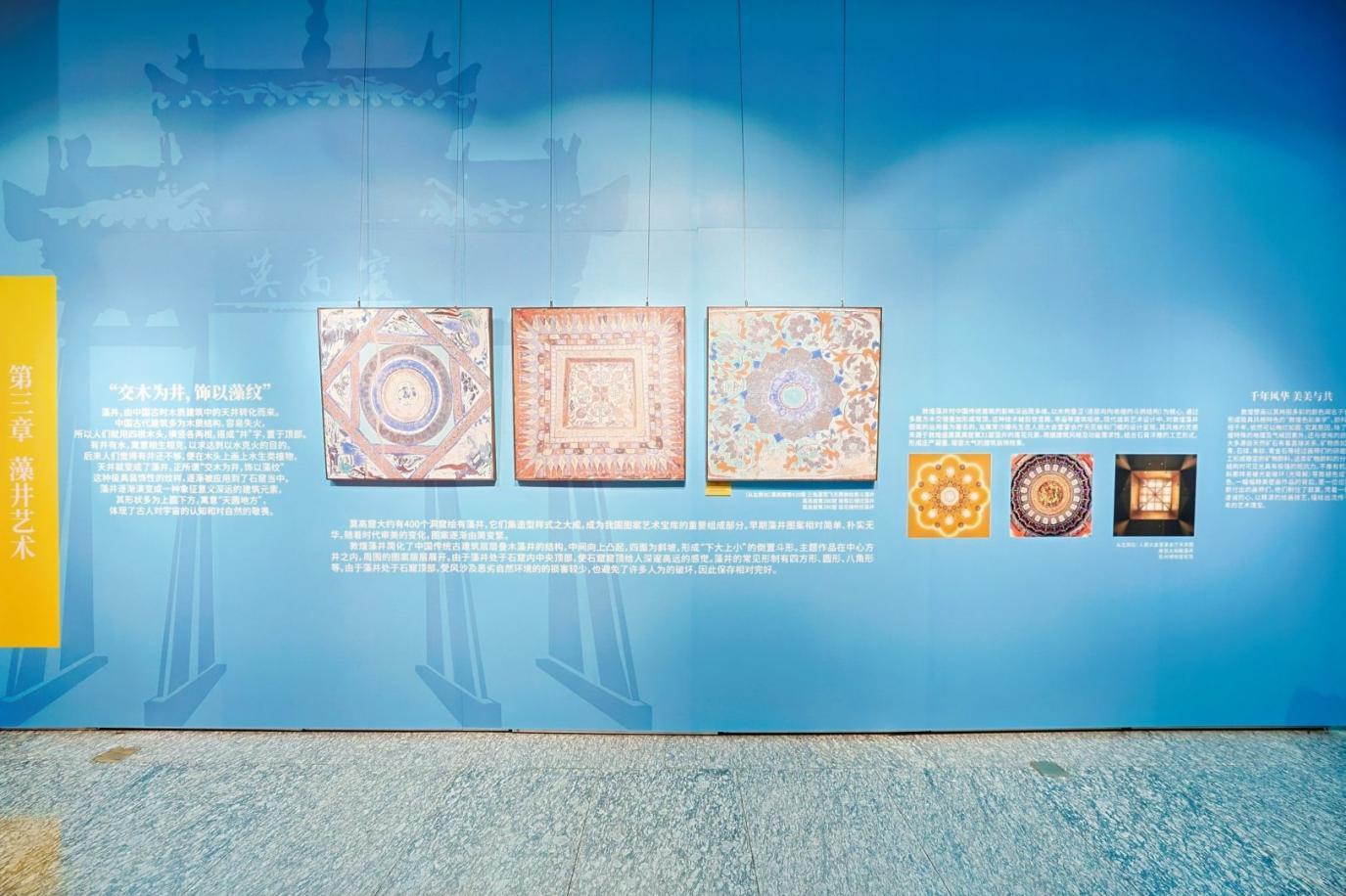 “藻井艺术”板块集中展示数幅极具代表性的藻井杰作,深入解读其精妙绝伦的结构设计、丰富多样的图案纹饰及瑰丽绚烂的色彩运用,揭示其对后世建筑与装饰艺术产生的深远影响。