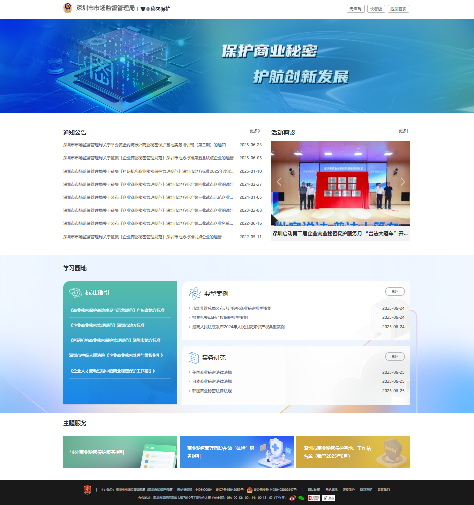 6月30日,深圳市市场监管局在对外门户网站正式上线“商业秘密保护”专题服务栏目。该栏目聚焦企业需求,整合政策宣贯、学习资源、风险防控及涉外服务等功能,为企业提供“一站式”商业秘密保护服务。