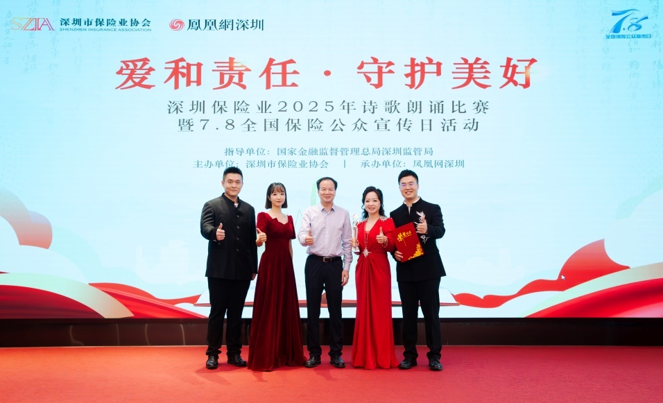 7月2日,由深圳市保险业协会与凤凰网联合主办的“爱和责任·守护美好”深圳保险业2025年诗歌朗诵比赛暨7.8全国保险公众宣传日活动,在深圳中国人寿大厦隆重举行。深圳金融监管局、深圳市保险业协会、各参赛公司相关领导,以及行业代表百余人莅临活动现场。