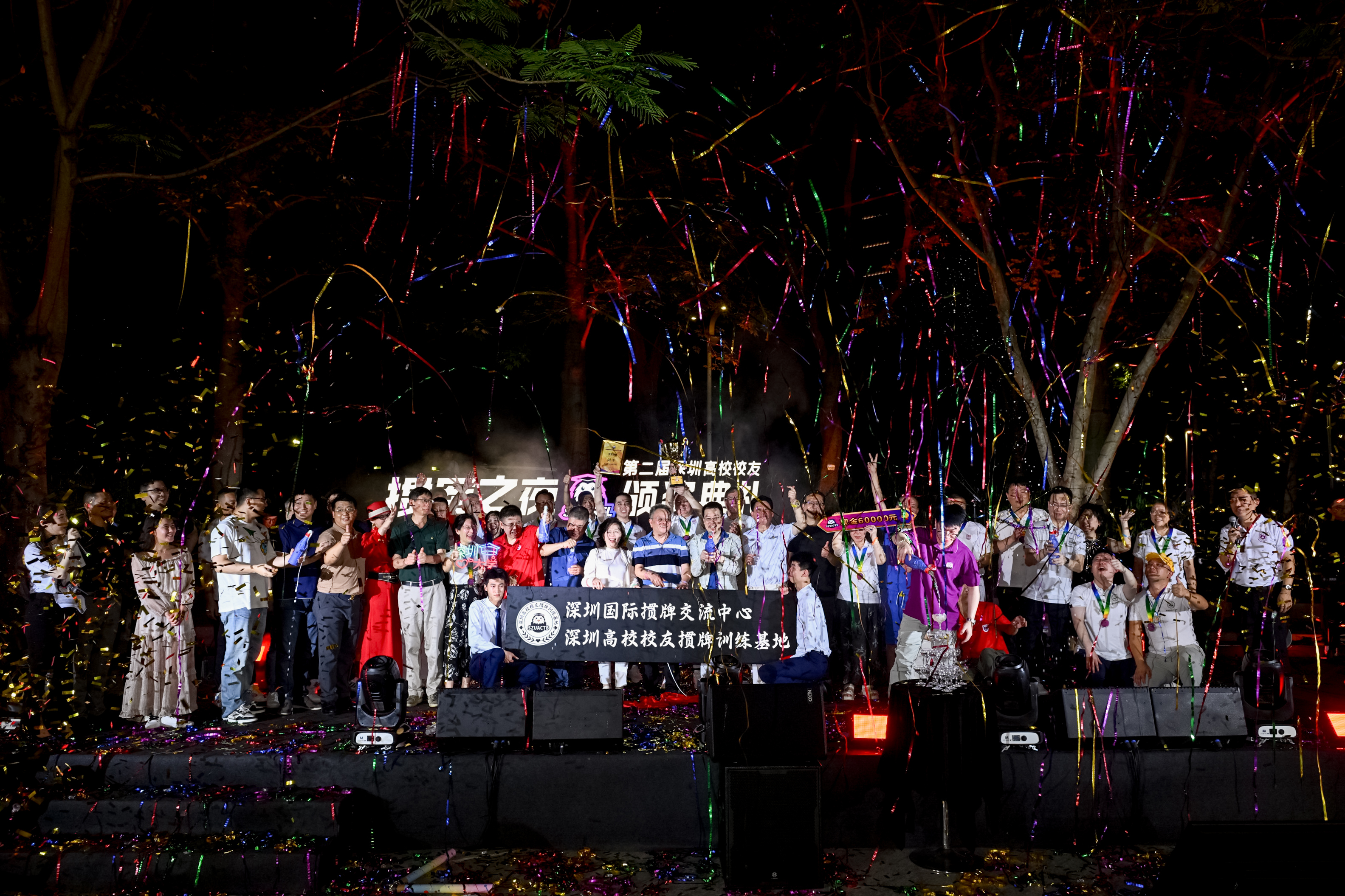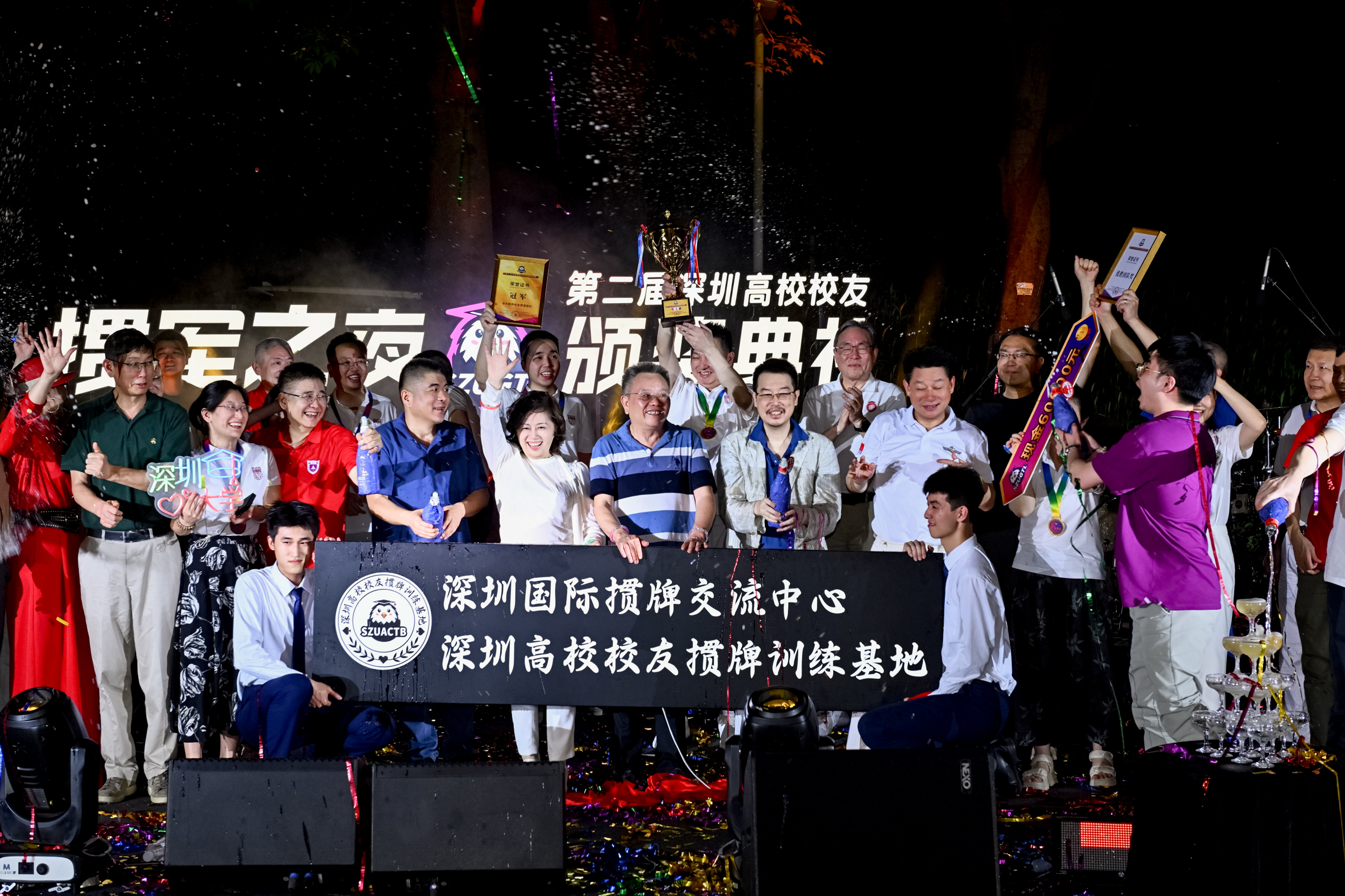 7月6日,第二届深圳高校校友掼牌团体赛总决赛暨颁奖典礼在侨城一号圆满落幕,这场与素人音乐共同打造的颁奖盛典,点亮了侨城夜空。本次总决赛暨颁奖典礼线上直播观看突破50万人次,热度空前。来自81所高校的1200多名校友经过3个月的激烈角逐,最终深大教师校友掼蛋联队摘得桂冠,深圳市中山大学校友会获得亚军,深圳市电子科技大学校友会获得季军。与此同时,深圳国际掼牌交流中心、深圳高校校友掼牌训练基地正式揭牌成立。