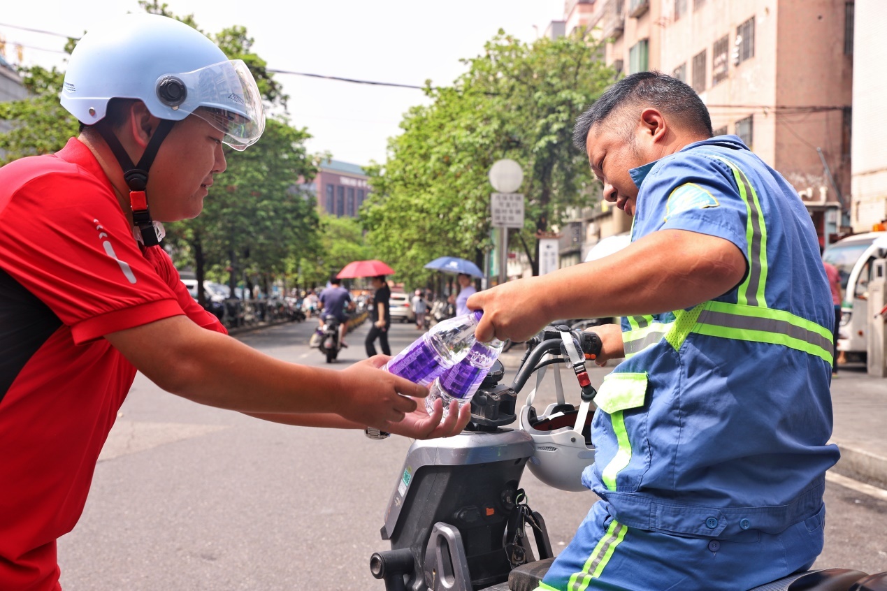 一瓶水接力!爱心企业员工奔走街头为烈日下的城市守护者送清凉热浪滚滚,暑气蒸腾。在广东持续的高温炙烤下,一群特殊的“送水使者”活跃在广州、深圳、佛山等城市的街头巷尾。他们并非专业配送人员,而是广东太古可口可乐有限公司近2000多名的员工志愿者,同时也是常年奔波在销售一线的“高温同行者”。在烈日炙烤下,他们用脚步丈量城市热土,在传递清凉的同时,也深刻体验着彼此工作的不易,诠释着“助人者自助”的公益真谛。他们只为将一份清凉与敬意,亲手送到那些默默守护城市脉搏的户外工作者手中。