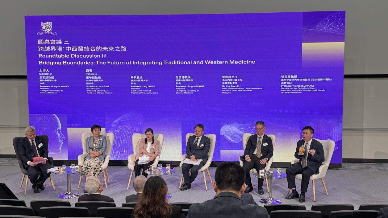 “一带一路中医药发展联盟”是由香港中文大学倡议,协同“一带一路”国家及地区20多所与传统医药相关的政产学研机构,于2023年自愿组成的非营利性合作组织。广州中医药大学深圳医院(福田)是“一带一路中医药发展联盟”创始成员单位,积极参加联盟活动,为中医药的国际化传播做出了积极贡献。医院党委书记张天奉教授作为嘉宾参加了由广州中医药大学校长王宏斌教授主持的圆桌会议,就“中西医结合的未来之路”发表了自己的观点,他指出:中西医结合不要仅限于中医与西医的结合,还要着眼于中医与现代科学的结合,特别是人工智能为中医药现代化插上了腾飞的翅膀,中医药现代化是推动中医药国际化的前提,中医药国际化要聚焦医疗、教学、科研、产业四大领域,发挥“一带一路中医药发展联盟”的桥梁和纽带作用。此外,张天奉教授还介绍了医院聚焦四大慢病,开展中西医结合的成功案例,并向海内外嘉宾发出邀请,欢迎大家加盟医院即将在河套深港科技创新合作区启用的“得壹中医药创新成果转化中心”,发挥这里“深港科技创新开放合作先导区、国际先进科技创新规则试验区、粤港澳大湾区中试转化集聚区”的政策优势和区位优势,为推动中医药走向一带一路国家贡献更多智慧和力量。