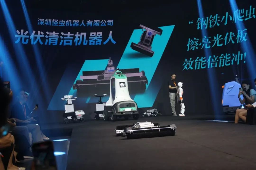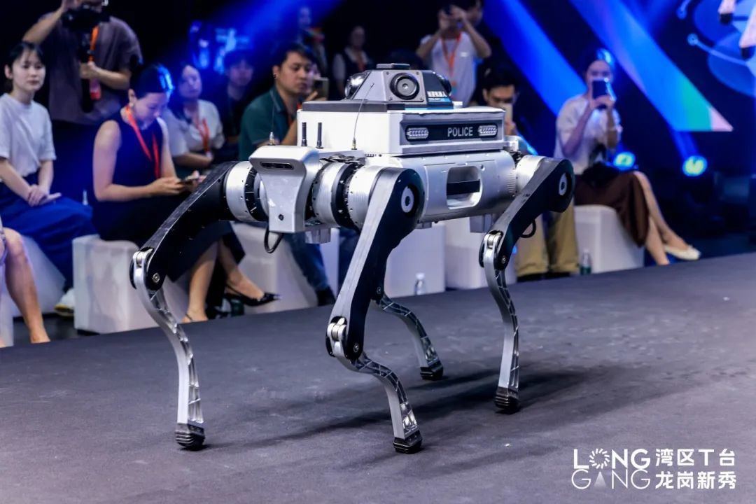 神州云海商用清洁机器人、怪虫机器人光伏清洁卫士、鑫龙浩“白泽”安防巡逻机器人、煜禾森全能型移动底盘、灵锶智能四足机器狗以及领益智造“灵识”具身机器人等六款产品组成了龙岗机器人“六边形全能矩阵”。