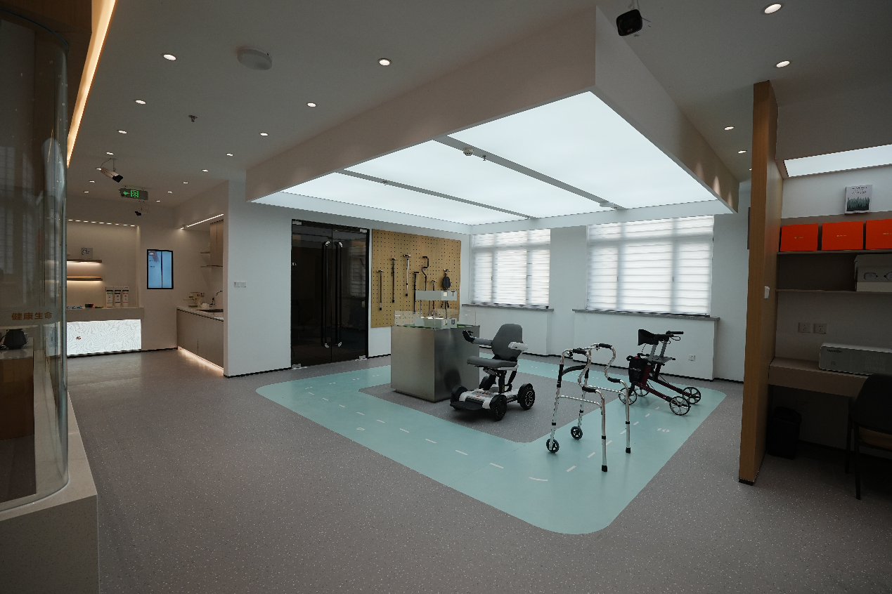 在服务维度上,2.0版本也进一步延伸服务链条。新增“出行赋能”“户外陪伴”等功能模块,在客户体验中心设置模拟街道和辅助设备试用区,帮助长者重拾探索外部世界的信心;同时打造“健康生命专区”,配合鹰瞳眼底照相机、呼气快检、AI智频机器人等科技设备,为客户提供“预防—干预—保障”的闭环健康守护。