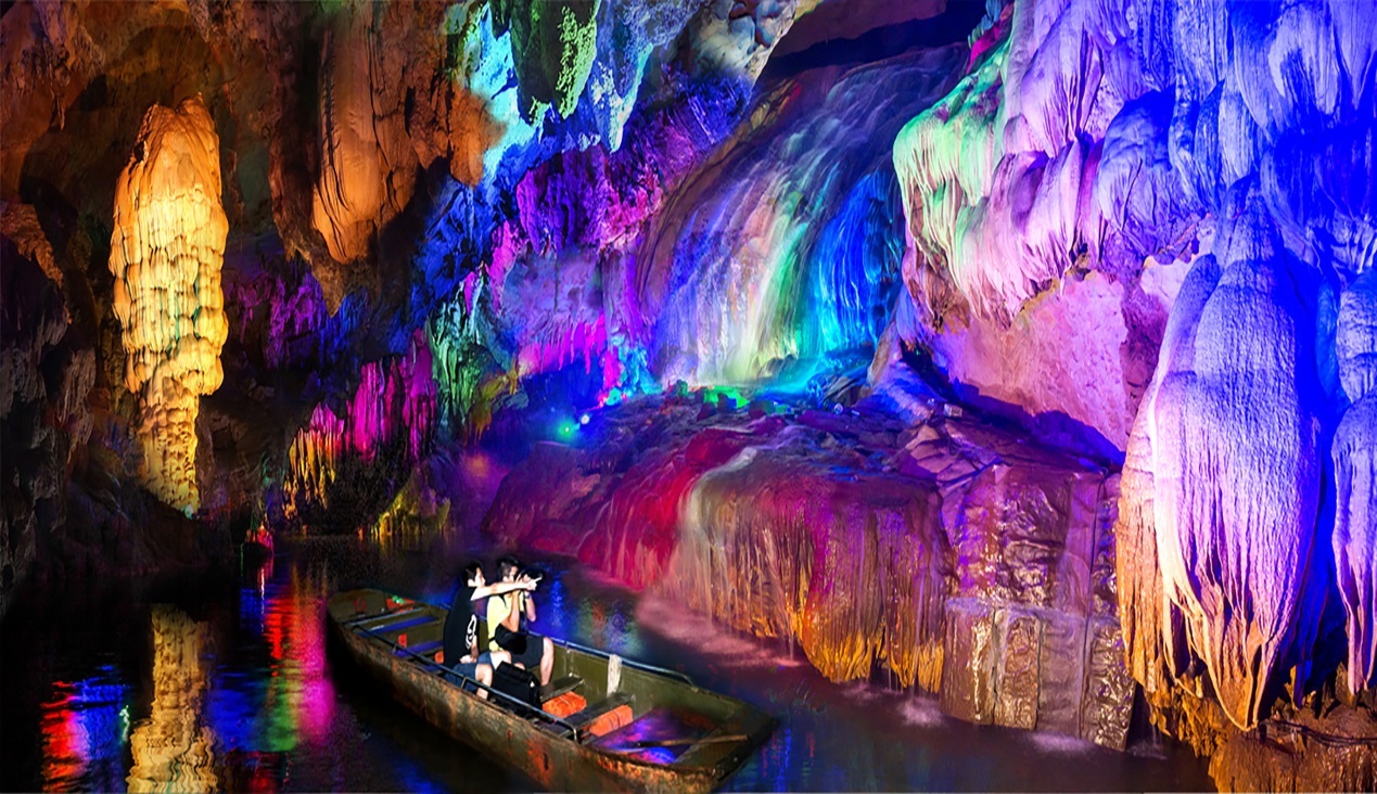 奇幻地心避暑王国:恒温18-22℃!乘船穿梭于亿万年形成的巨大溶洞之中,在七彩灯光映照下,看千姿百态的钟乳石如银河倾泻、如飞鸟走兽,仿佛置身《地心历险记》场景。洞内水路蜿蜒,陆路奇观迭出,孩子全程惊叹“哇塞”!