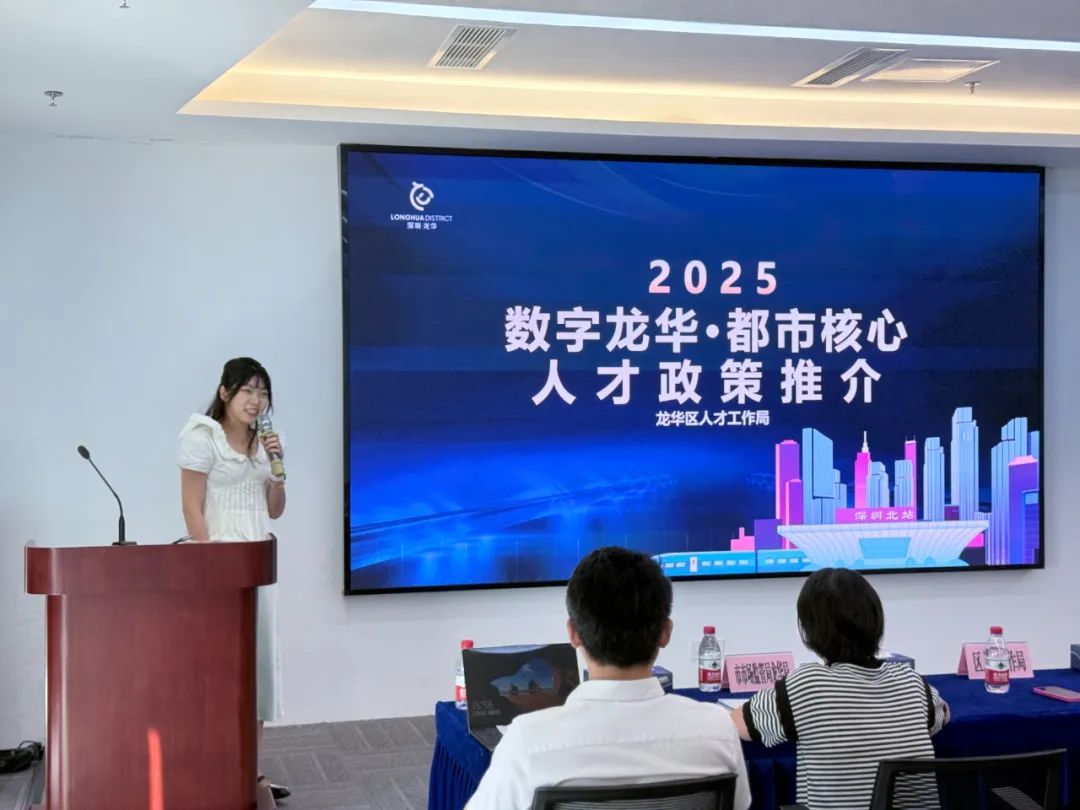 在人才政策宣讲环节,龙华区人才工作局系统介绍了“龙舞华章”人才政策,指出新版人才系列政策在顶尖人才引进、青年人才培育及服务保障等领域推出多项升级举措,同时针对人才最关心的科研奖励、人才激励标准、安居医疗保障等核心需求进行了精准的解读传达,为企业招才引智提供了有力的支撑方向。