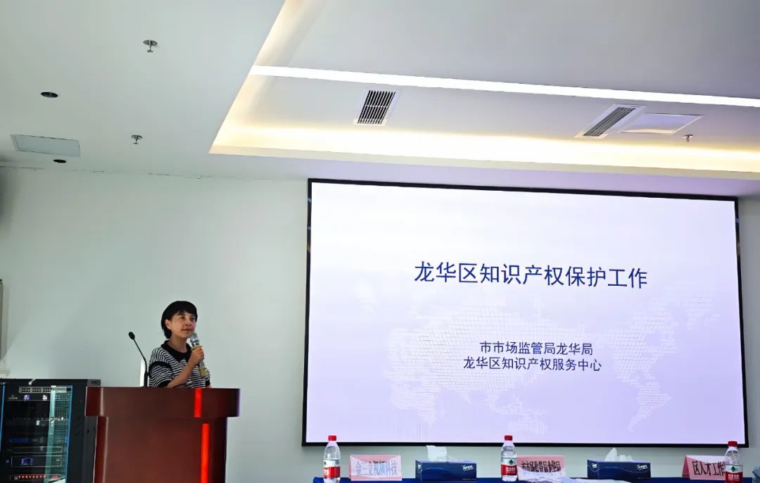 在知识产权保护宣讲环节,深圳市市场监督管理局龙华监管局首先介绍了龙华区知识产权服务中心的职能和公益服务清单,以及专利快速预审的优势、流程及备案条件。随后详解知识产权行政保护途径,并围绕知识产权创造质量、运用能力、保护能力、宣传教育、服务能力5个方面,解读市级知识产权领域政策,为企业筑牢知识产权保护屏障,激发创新活力。