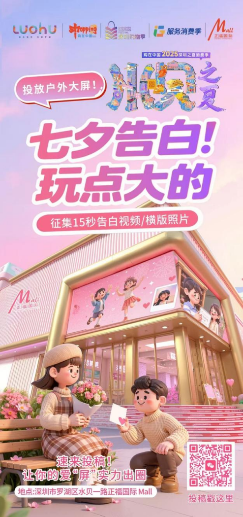8月27日-8月29日,关注正福国际Mall公众号/小红书/朋友圈投稿,你的告白视频将登上LED大屏~