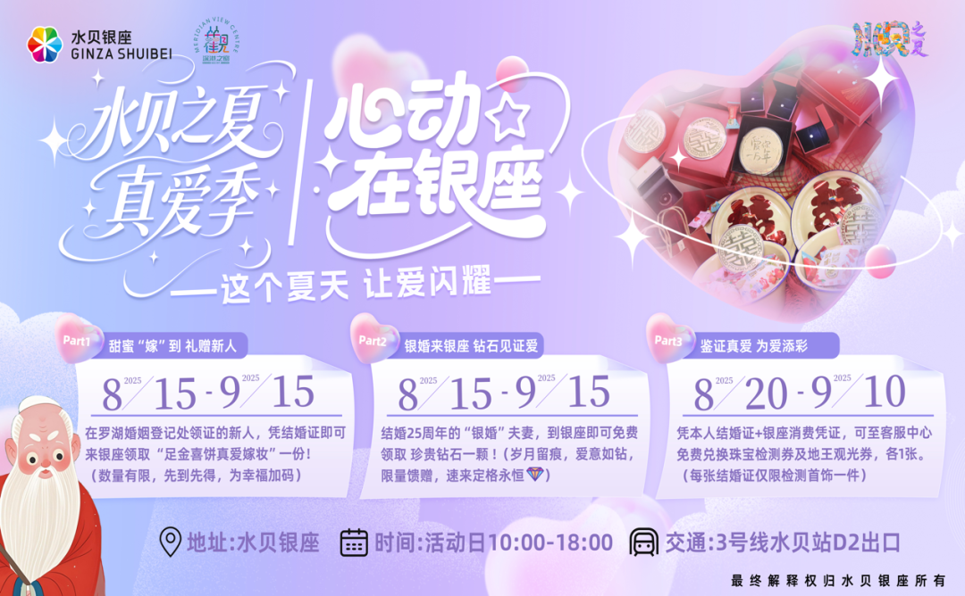 此外,结婚25周年的“银婚”夫妻,到银座即可免费领取莫桑钻石一颗!(限量馈赠,速来定格永恒)
