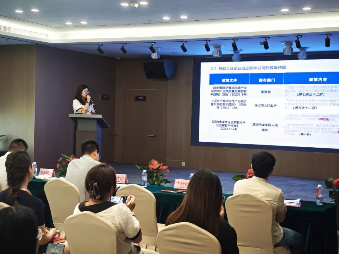 首先,龙华区工业和信息化局软件服务业科相关负责同志围绕《深圳市龙华区支持软件产业发展若干措施》、《深圳市龙华区打造深圳北软件产业基地实施办法》(←点击标题查看政策详情)展开深度解读,将政策内容拆解为软件产业专项政策、鸿蒙产业专项政策两大板块,全面清晰地呈现龙华区在软件产业的扶持方向和具体举措。其中,软件产业专项政策从软件企业培育、软件名园打造等六大维度,逐项拆解扶持条款,为企业精准匹配政策红利提供清晰指引;鸿蒙产业专项政策聚焦智慧园区建设,重点解析智慧园区的评定标准、申报材料等,助力企业对接鸿蒙生态相关支持。此外,还讲解了工业企业成立软件公司的可行性和操作流程,明确软件企业在所得税、增值税方面可享受的税收优惠政策,鼓励企业充分利用政策优势,通过分设软件企业优化业务结构,提升市场竞争力。