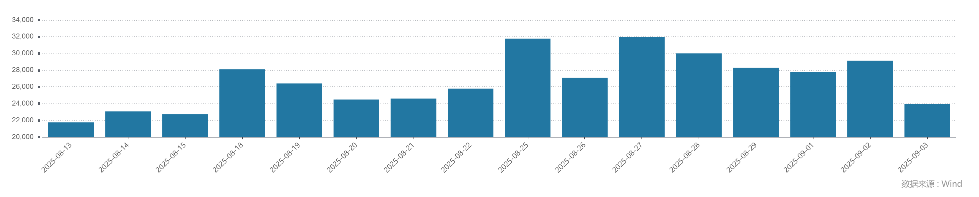 Wind数据显示,从8月13日至今,A股成交额已连续16个交易日超过2万亿元。