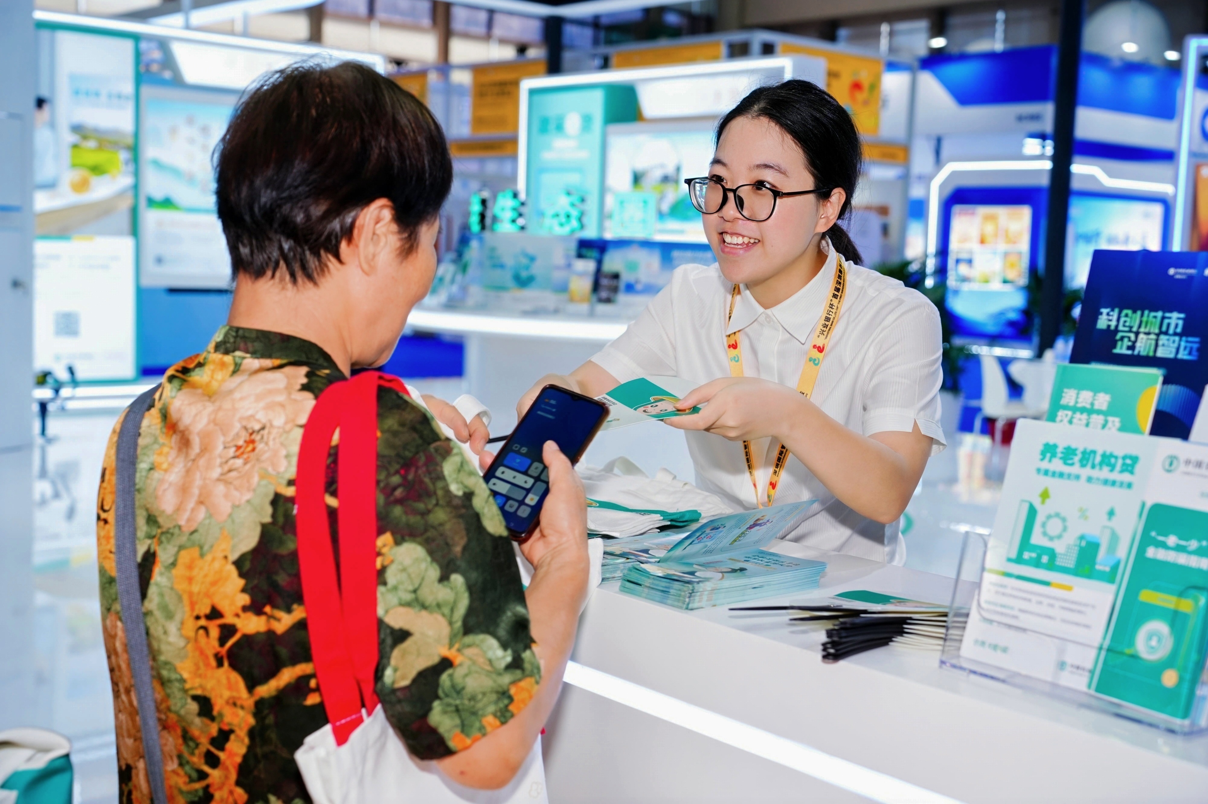 农行深圳分行展台精心打造四大主题专区——养老产业金融、养老金金融、养老服务金融以及养老金融消费者权益保护,全方位展示农业银行在养老金融领域的综合实力与创新成果。
