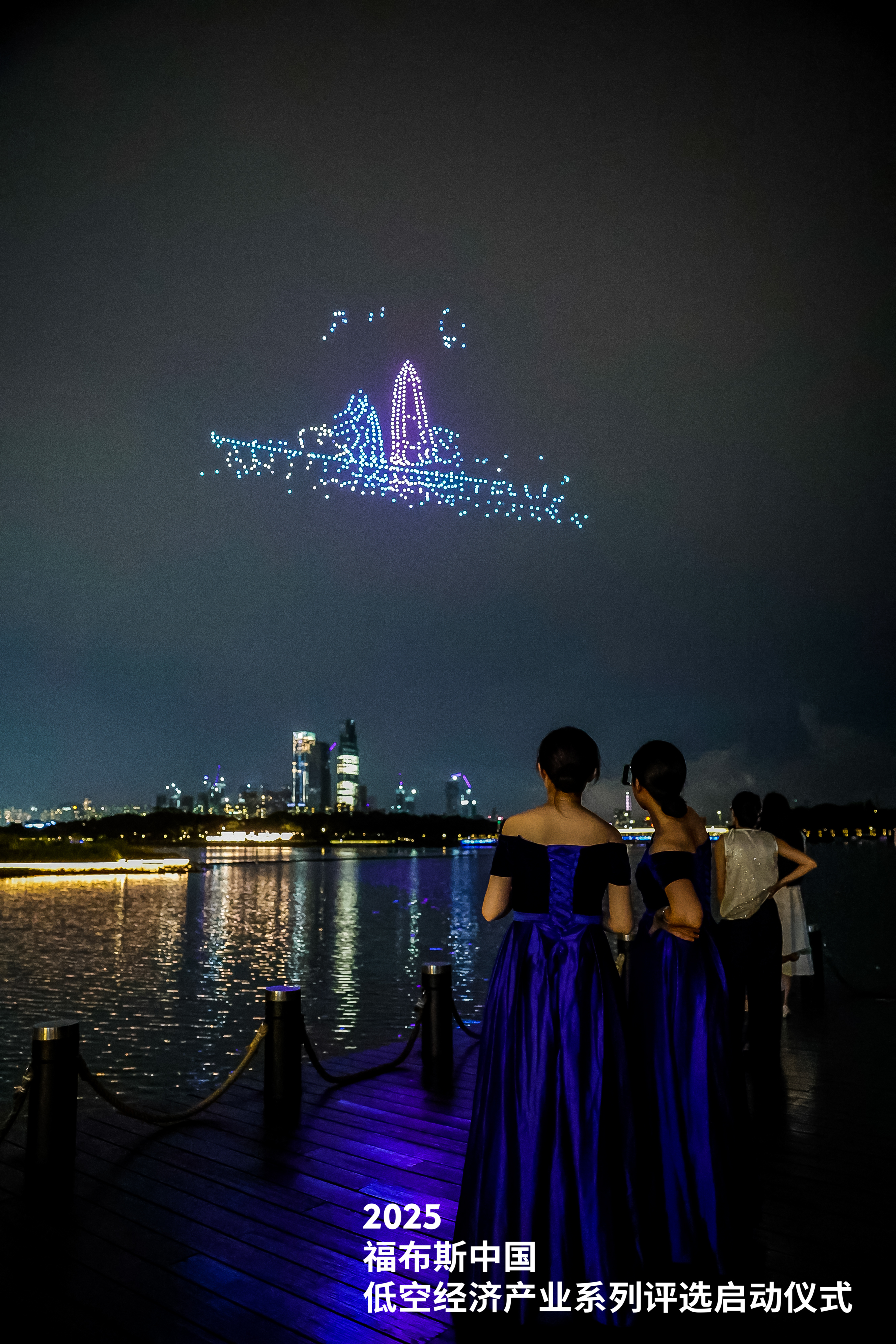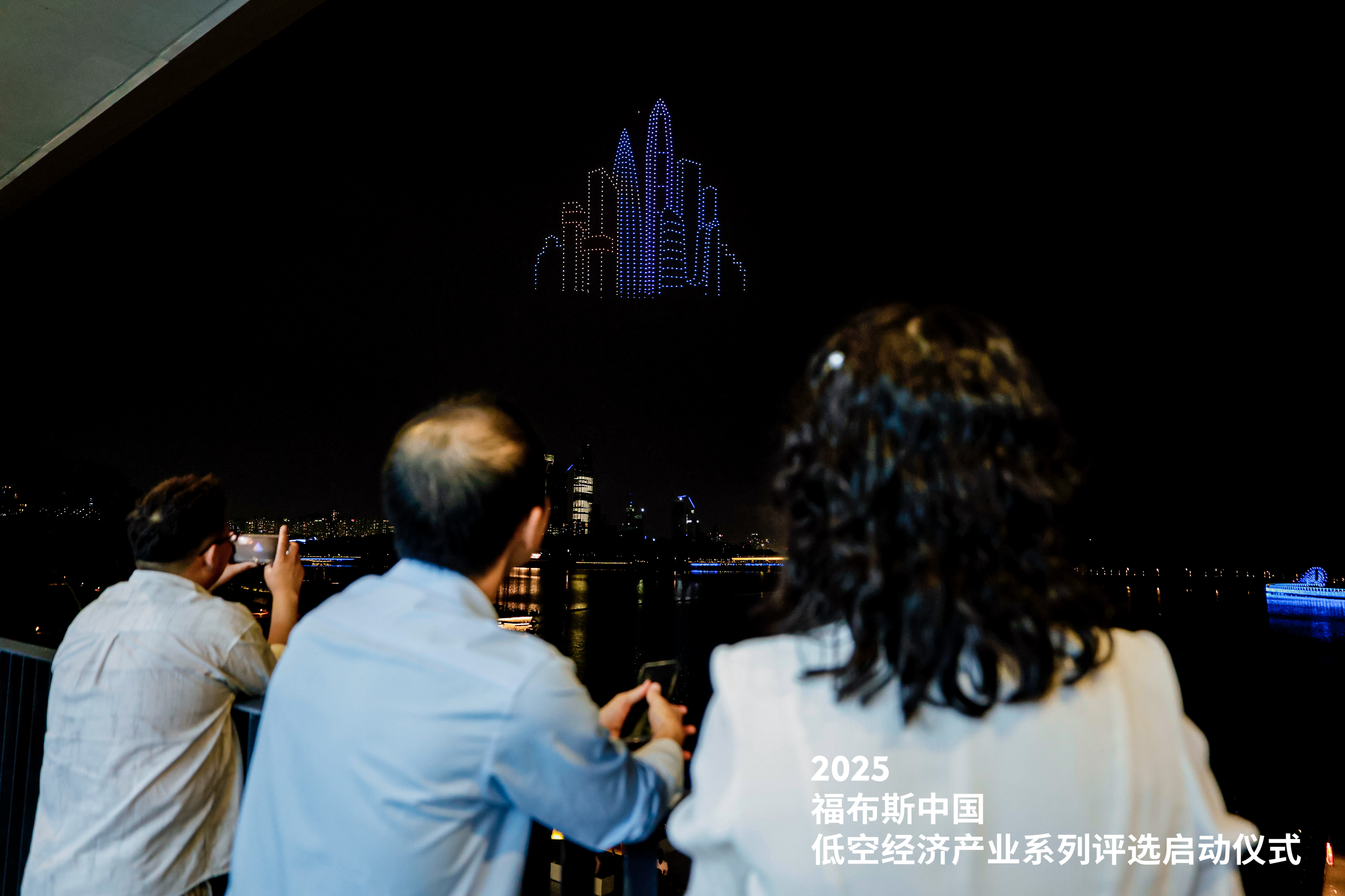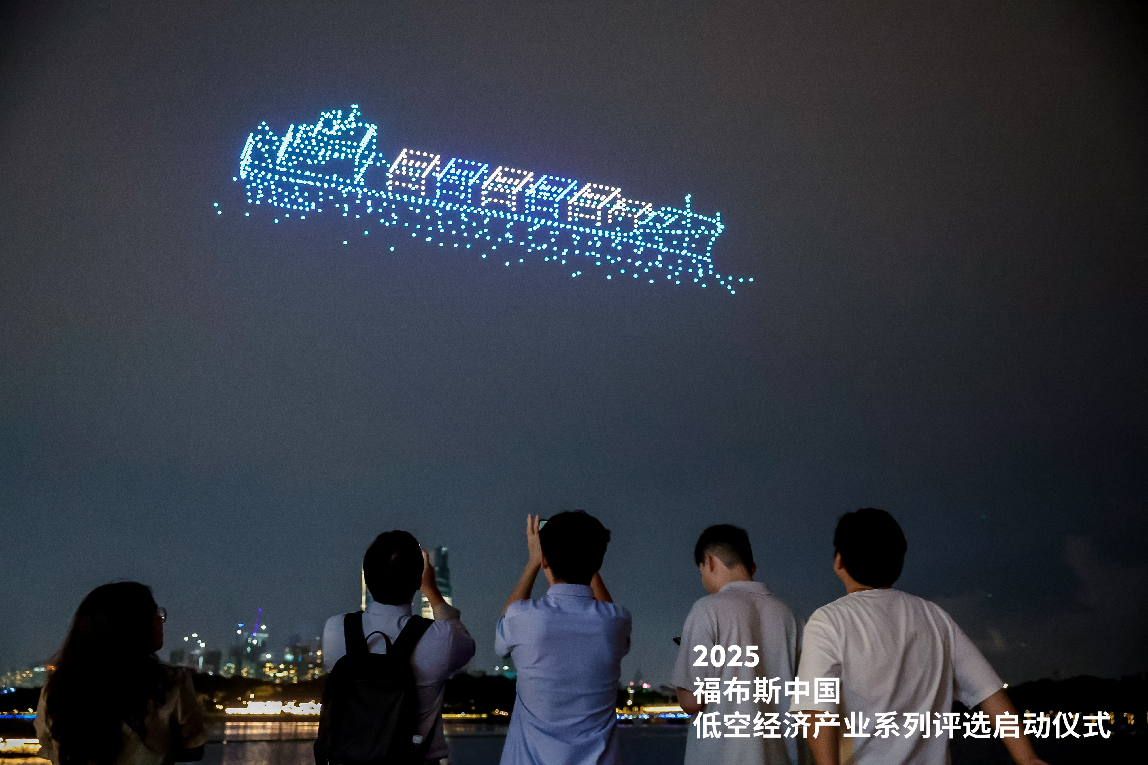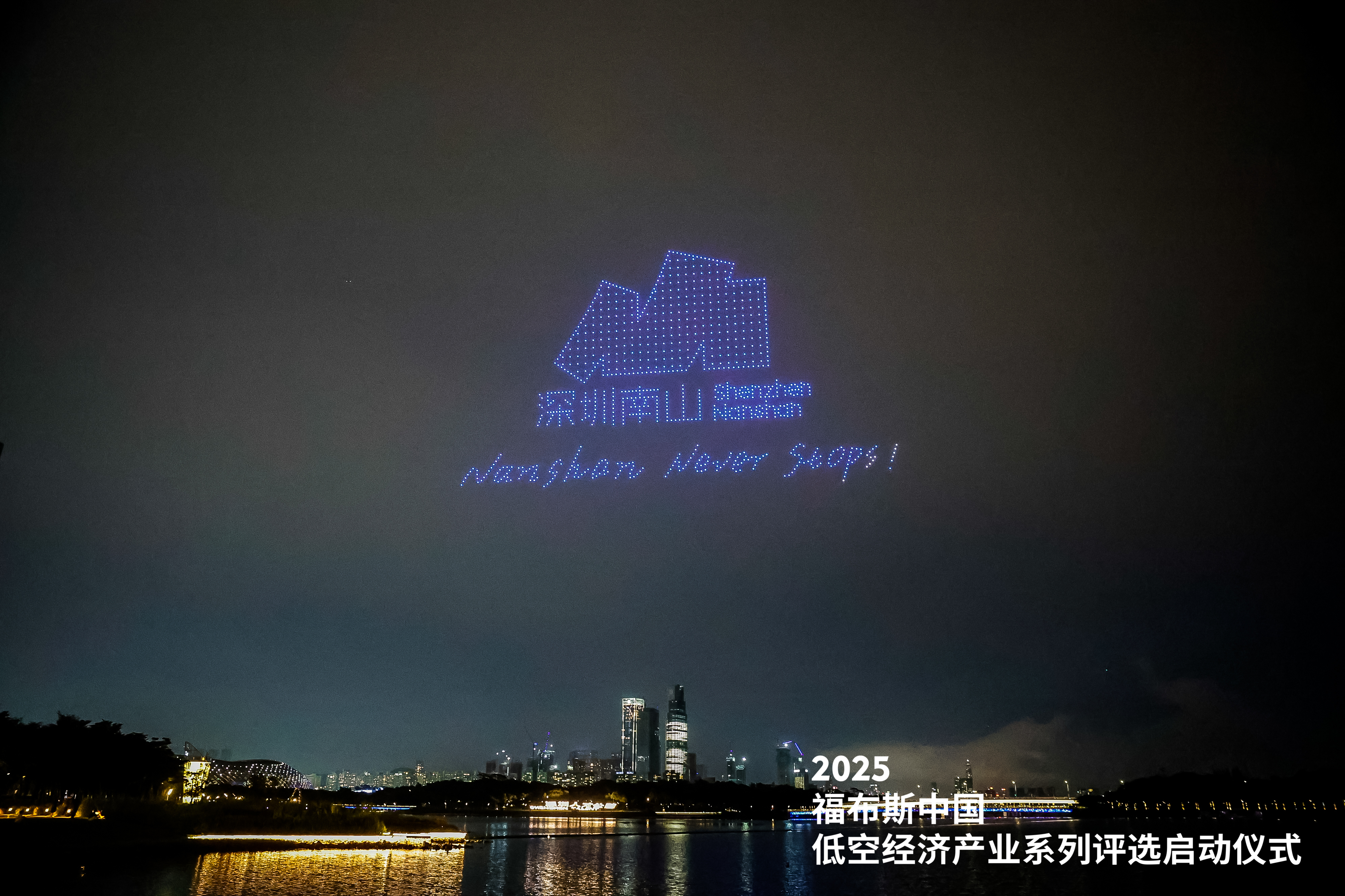 活动最后,与会各方进行了充分的产业交流互动。傍晚时分,千架无人机在人才公园缓缓升空,通过精准的编队控制,先后变幻出“深圳建区45周年”“全球低空第一城”“深圳南山 永不止步”“无安全 不低空”“RIC润维 福布斯”“系列评选”等字样,随后又演变为金光无穷图案、科技星光、无人机等具有行业特色的造型,生动诠释了低空经济的科技魅力与未来图景。