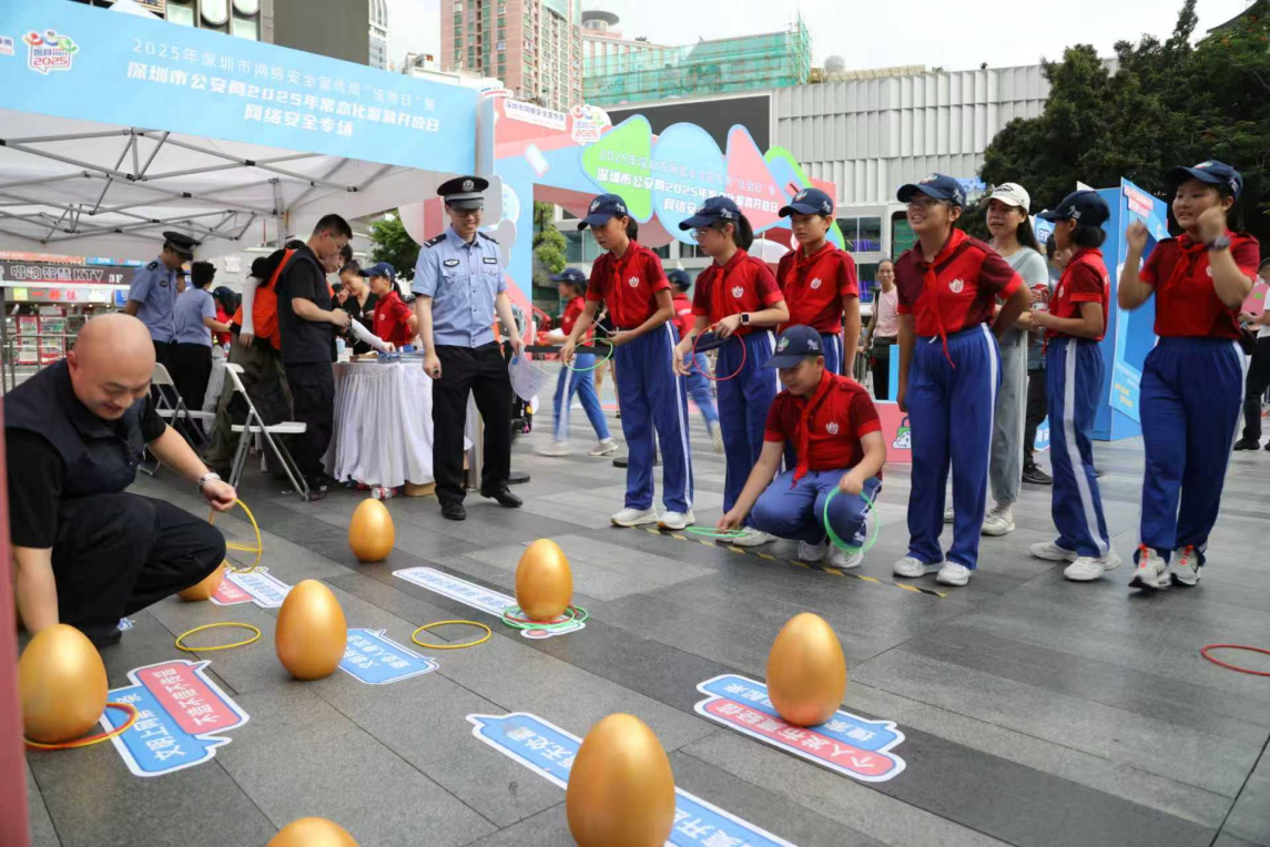 “个人信息防泄漏,谣言蜚语莫轻听;适度上网防沉迷,谨防诈骗常提醒;与人为善拒网暴,守好底线不欺凌……”9月18日下午,在深圳市罗湖区东门步行街白马广场,深圳市公安局举办2025年网络安全宣传周“法治日”暨常态化警营开放日网络安全专场活动,吸引了众多市民驻足参与。舞台上,穿着统一制服的深圳少年警营队员们齐声诵读《新时代青少年网民文明公约》,高亢有力的诵读赢来台下一阵阵掌声,现场气氛热烈。