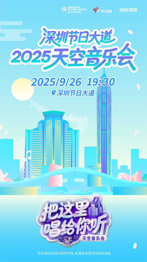 为推动深圳城市文化形象出圈,助力打造世界级观光旅游和休闲度假目的地城市,由深圳市福田区人民政府、广东广播电视台联合主办的“深圳节日大道2025天空音乐会”将于 9 月 26 日19:30在大中华国际金融中心楼顶震撼上演并面向全球线上直播。
