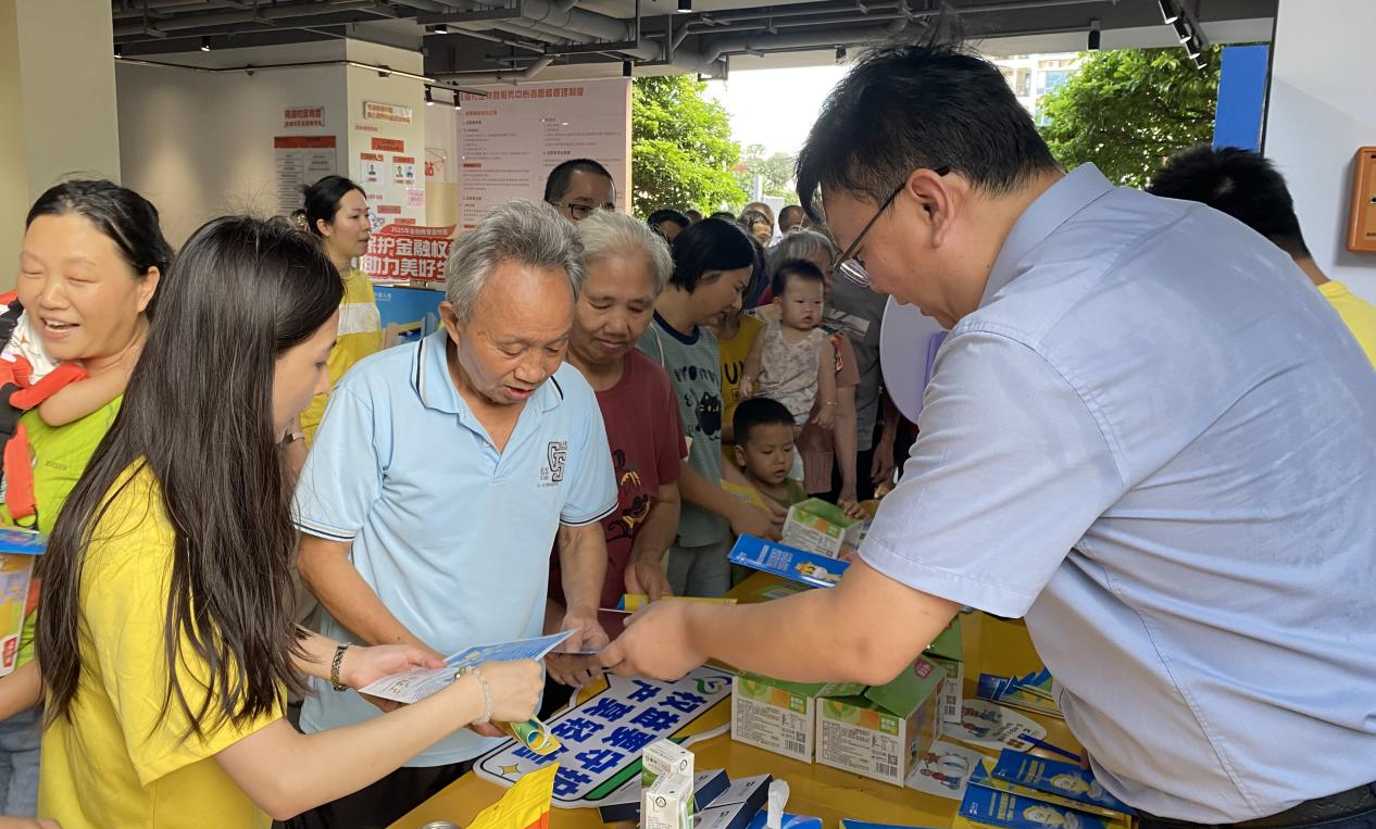 活动当天,中英人寿深圳分公司总经理带领金融青骑兵服务队,在龙海家园“邻里共融坊”开展以“保障金融权益 助力美好生活”为主题的宣传活动,金融知识宣传趣味互动吸引了大批居民参与。“反诈视力表”游戏前排起长队,老人们通过辨识诈骗术语锻炼“防骗眼力”;“反诈轮转”互动区传来阵阵欢笑,居民们在游戏中学习识别诈骗套路;“知识百保贴”区域人头攒动,居民们用学到的金融知识完成答题。