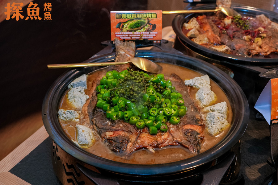 作为探鱼的原创经典,“鲜青椒爽麻烤鱼”依然延续高光表现。该产品严选重庆江津“头子花椒”与峨眉山藤椒,通过黄金配比打造出双重爽麻风味,清香四溢、麻味纯正。自2014年上市以来,该口味长期稳居销售榜首,并获得美食家蔡澜“连皮带肉都入味”的高度评价。2020年,该产品获评“深圳餐饮地标美食名菜”,并被《新周刊》美食词典收录并首位推荐。