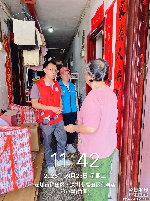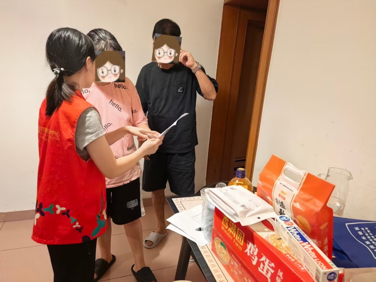 面对台风威胁,香蜜湖街道各社区党委迅速启动“温情敲门”行动,将关爱送至空巢老人、独居长者及特殊家庭等重点人群。党员干部们通过上门走访、电话联系等多种方式,全面摸排特殊困难群体的生活物资储备情况。他们逐一敲开独居空巢老人的家门,细致检查水电燃气设备安全,耐心宣传台风最新动态与防灾避险知识。对于物资准备不足的老人,社区更是贴心送上饮用水、食物和应急手电筒等必需品。“有你们送东西来,还帮我检查门窗,这下心里踏实多了!”82岁的李奶奶感激地说道。此次行动已惠及辖区300余名特殊困难居民,党员干部的每一次敲门、每一句叮嘱,都实实在在地转化为他们应对风雨的安全感与信心。