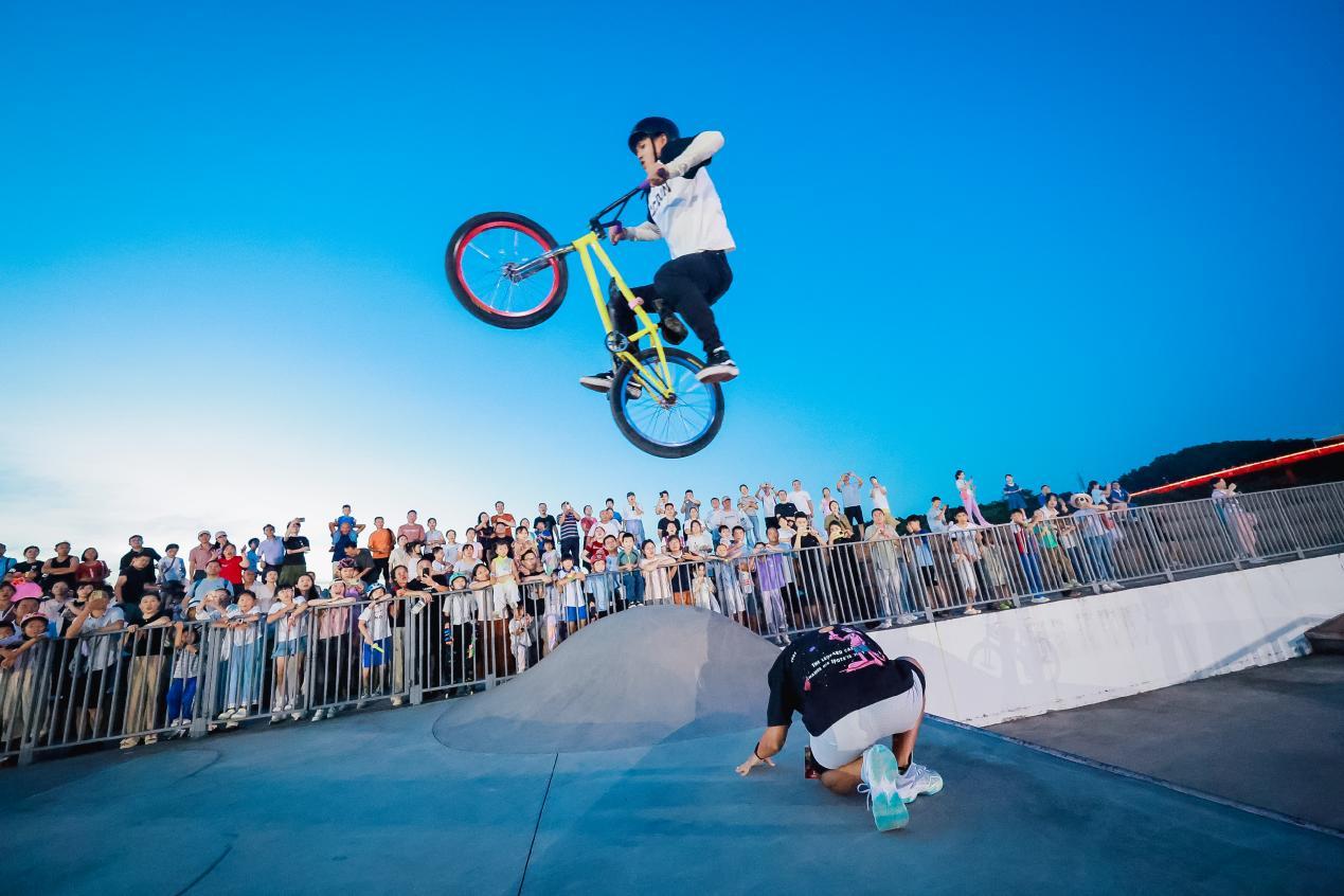 10月4日至6日,活动迎来三大定点演出重磅上线,为市民带来更具冲击力的视听体验。碧湖区滑板场的“跃动纪元·极限秀场”堪称“热血担当”,极限运动员们轮番展示BMX小轮车、滑板与极限轮滑的高难度动作:BMX选手在碗池与跳台间腾跃,完成360度空中转体、后轮定车;滑板选手脚踩板面掠过栏杆,杆上滑行、空中抓板行云流水;极限轮滑以高速过弯、飞跃抛台的爆发力震撼全场,每一个精准落地的动作都引发观众连连惊呼。