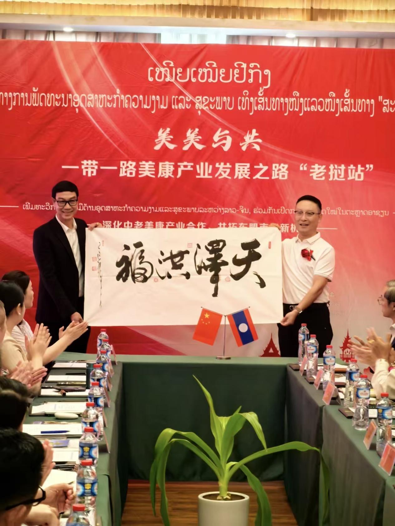 此次出访旨在与占巴塞省在美容、美妆、健康、养生、文旅、康养、养老、中医及生物医药等领域探索合作新空间,促进资源互补。活动中,代表团向老挝占巴塞省文旅厅赠送了由深圳诗碧曼科技集团定制的“美康产业”国礼礼盒,以及由深圳市美促会专家学术委员会会长、量子科学家张铁民题写的书法作品“天泽洪福”,象征中老友谊源远流长。