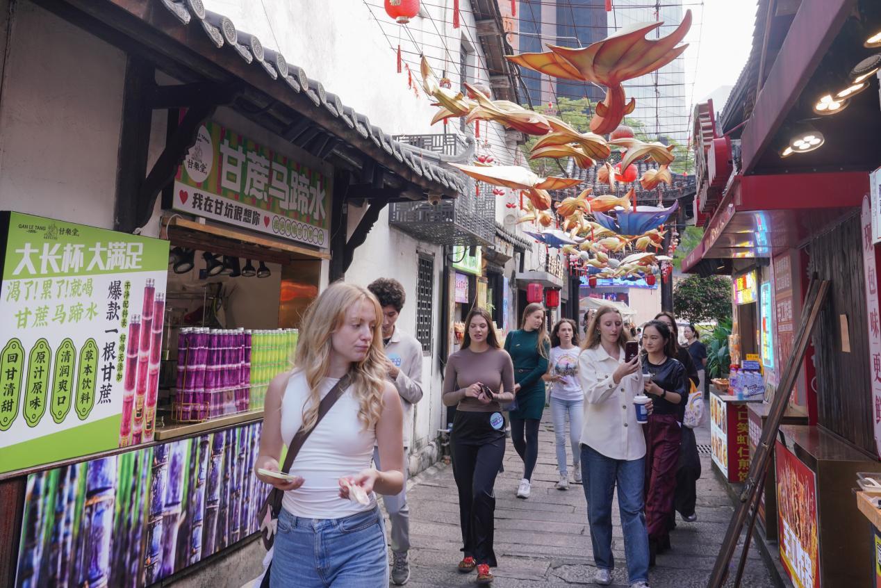书院内,二十四史大书店、东坡书屋、杜甫书屋等八大特色书店群散落于十八座东方庭楼别院中,三万册藏书营造出浓郁的文艺气息。这一刻,留学生们不仅是访客,更像是穿越时空与历史先贤进行一场静谧交谈的学子,在满院书香中,感受着中华文脉的悠长呼吸。“在这里,我深入了解了诸多关于中国文化和历史的新知识,感受到中华文化源远流长、博大精深的深厚底蕴。”一位参与活动的留学生感慨道。离场时,多数留学生仍意犹未尽,驻足讨论活动体验的细节。