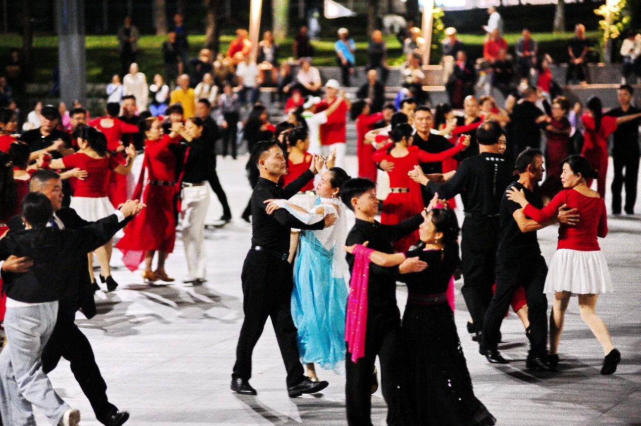 横岗素来拥有“交谊舞之乡”的美誉,交谊舞文化在此地有着深厚的群众基础与广泛的感染力。活动中,区体育舞蹈协会、横岗交谊舞协会及广场两只交谊舞队联袂登场,带来了优雅与激情交织的交谊舞曲串烧,以及经典圆舞曲《滚滚红尘》。舞者们身着盛装,在悠扬的乐曲中起舞,舞姿曼妙,风度翩翩,精彩的表演也激发了观众的热情,不少居民纷纷加入,促进了交谊舞这一特色文化在社区的进一步普及与传承。