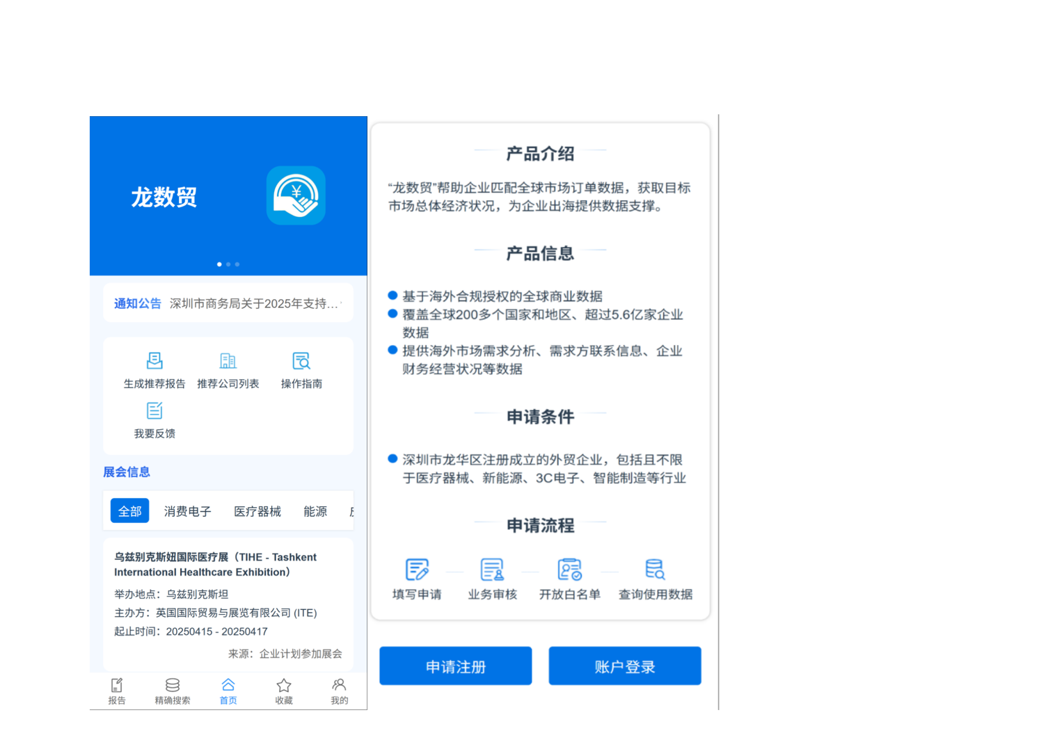 针对企业“找市场难、拓客户难”的共性需求,龙华区推出“靶向式”数据服务,通过“试点先行”机制,首批选取11家外贸企业开展精准验证,覆盖智能制造、消费电子等重点行业,以实际应用场景倒逼服务优化,确保产品“能用、管用、好用”。试点期间,累计生成超50份高精度市场分析报告,筛选超1.5万条精准销售线索,助力企业潜在客户数量翻三倍,初始客户转化率由25%提升至50%,同时试点企业覆盖初创企业到行业龙头全规模类型,提供差异化数据支持,避免“一刀切”服务模式。试点验证表明,“龙数贸”数据产品已具备规模化推广的成熟条件,为企业出海提供“精准导航”。