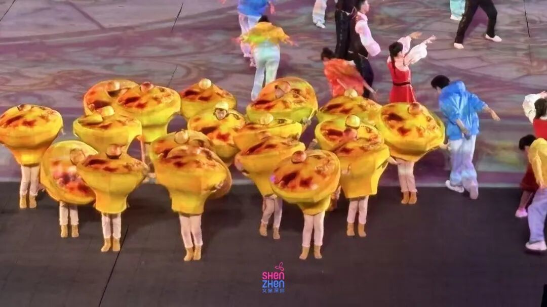 在表演候场中,还有一群穿着可爱蛋挞服饰的小朋友们在后台与观众互动。“小蛋挞”们会出现在哪些环节中呢?让我们一起期待!