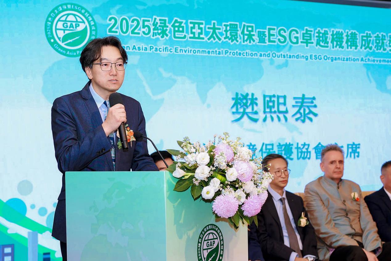 香港环境保护协会主席樊熙泰表示,绿色是亚太地区发展的底色,ESG是企业长远发展的核心密码。近年来,我们欣喜地看到,越来越多机构与企业主动扛起生态责任——有人深耕环保技术创新,让绿色生产贯穿产业链;有人坚守社会责任初心,用行动温暖社群、助力共富;有人筑牢治理根基,以透明诚信赢得市场信赖。你们以实际行动证明,环保与发展从非对立,责任与效益亦可共生,你们的探索与坚持,正在为亚太地区的可持续发展铺就坚实道路。