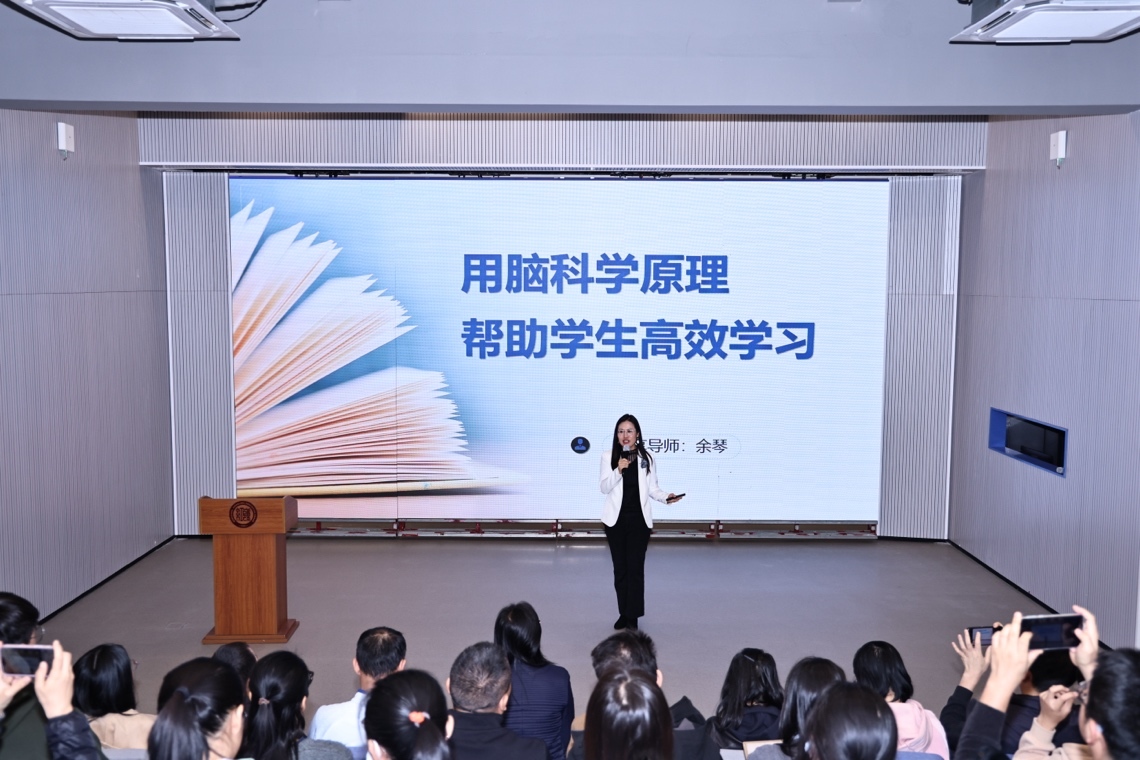 11月20日,红岭教育集团园岭中学迎来教育实践与前沿科学的深度碰撞——红岭书院云礼堂首次启用,特邀青少年高效学习力教练、清华大学出版社畅销书《懂点脑科学,让学习轻松高效》作者余琴,为校领导及骨干教师带来《用脑科学帮助学生高效学习》专题讲座,将脑科学原理与教学实践深度融合,为教师们破解学生学习难题提供科学方案。