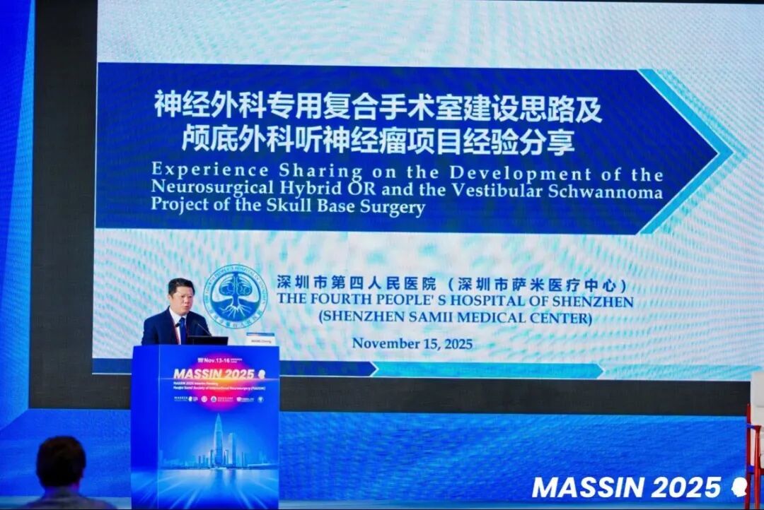 2025年11月13日至16日,第五届马吉德·萨米国际神经外科学会中期大会(MASSIN2025)在深圳前海国际会议中心举行。大会由中国医学基金会主办,首都医科大学宣武医院、中国国际神经科学研究所、德国汉诺威国际神经科学研究所、深圳市第四人民医院(深圳市萨米医疗中心)等联合承办,是一场高规格、国际化、内容丰富的学术盛会。来自24个国家和地区的近60位国际专家、近百位国内专家齐聚一堂,大会吸引了近600名神经外科医师参会。
