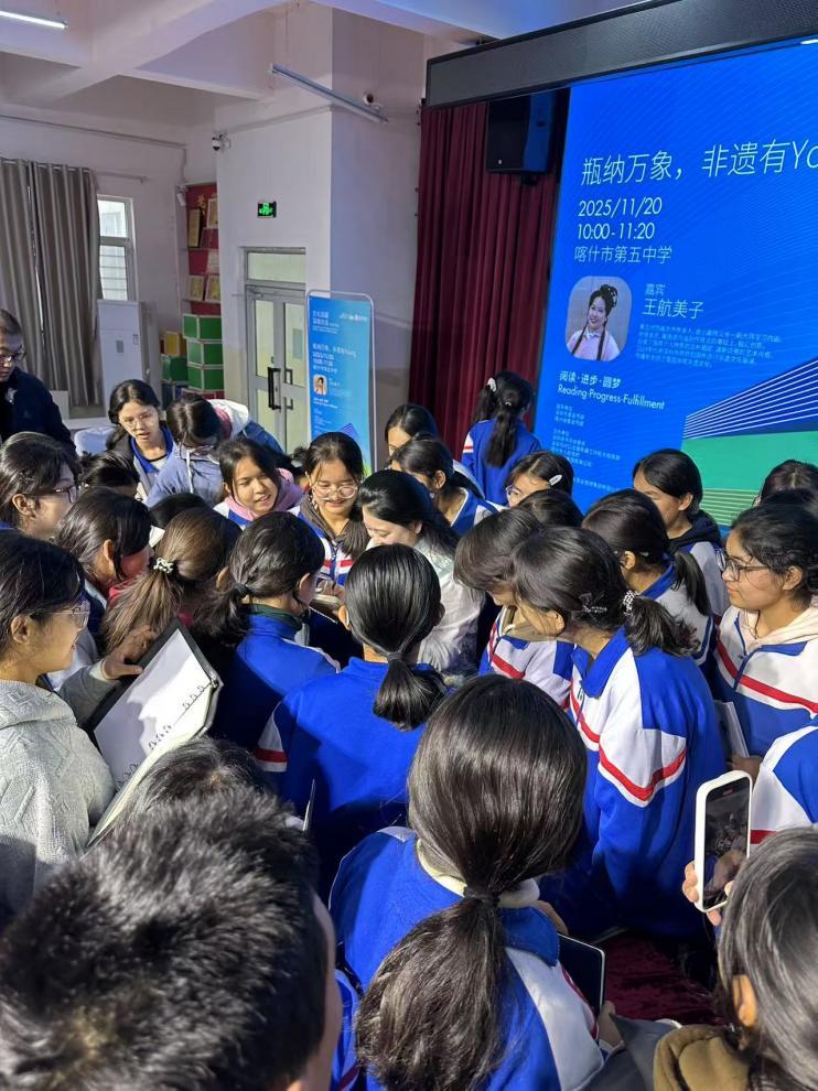2025年11月20日,一场意蕴悠长的非遗对话在喀什市第五中学如约开启。王航美子老师生动讲述了内画艺术的百年雅韵与四大流派技艺,让传统之美深入人心。