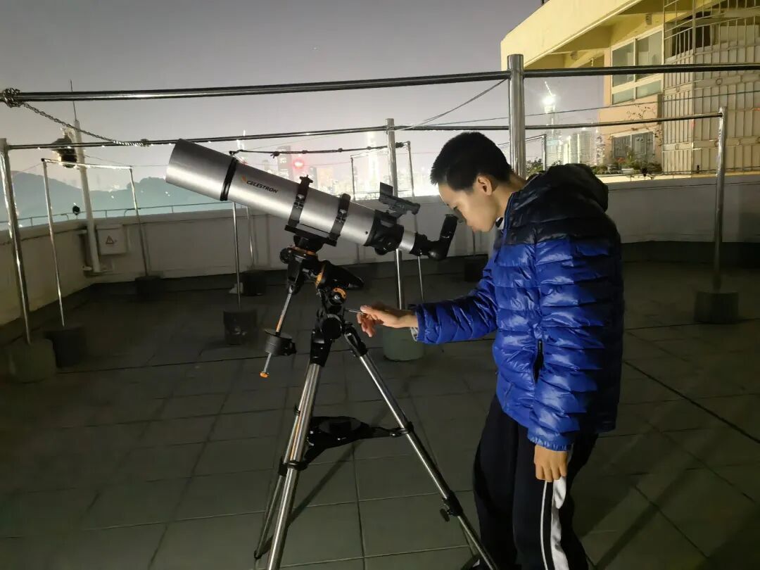 “第一次接触专业望远镜时完全懵了。”初次操作学校的高桥130mm望远镜时的手忙脚乱,他至今记忆犹新。为了掌握赤道仪校准,他连续三周每晚到天台练习,曾因忘记带防露罩导致镜头结露而被教练严厉批评。