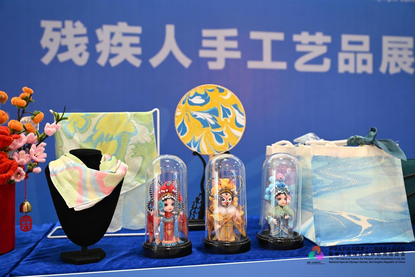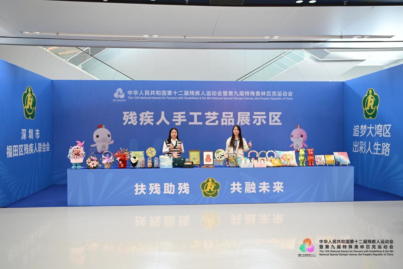 这片小小的手工艺品展示区,就像一束温暖的光,照亮了残障人士的追梦之路,也让整个残特奥会福田赛区充满了爱的温度。