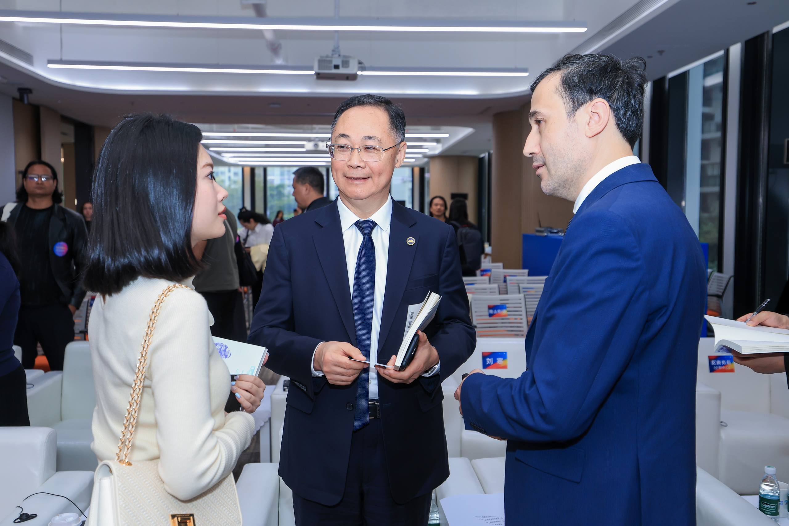在专题分享环节,萨达尔·穆罕默德总领事表示,随着中巴经济走廊建设跨越十周年里程碑,两国合作已顺利迈向以科技合作为核心的第二阶段,巴方热切期待在人工智能、电动汽车及云技术等领域与深圳南山深化合作。米娜拉·拉哈诺娃顾问指出,上合组织成员国近年来在数字经济、绿色能源、创新创业等领域出现新的合作机遇,期待中国的创新基因能成为上合组织发展的新引擎。哈萨克斯坦和乌兹别克斯坦驻华外交官代表分别介绍了本国与中国企业的合作潜力及优惠政策,表示未来愿通过资源赋能、产业对接等方式,与深圳企业实现更广泛领域互利共赢。王拥军参赞分享了《新时代的上合故事》一书中的精彩内容,指出本书以构建上合组织命运共同体为主线,书中的18个故事就像一部“上合大家庭的纪录片”,每个故事都生动诠释着上合组织框架内合作给各国人民带来的实实在在的好处。希望大家通过这本书感受“上海精神”的力量,体验民心相通的温暖,坚定命运与共的信念。
