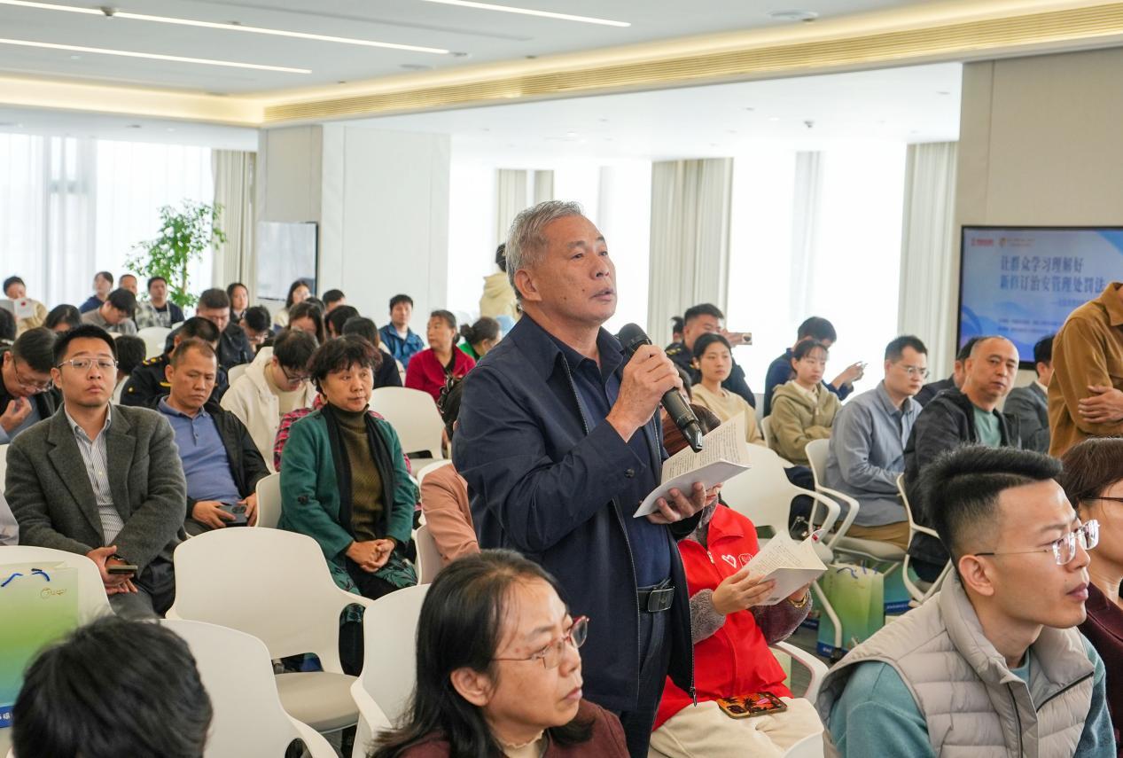 全国人大常委会法工委备案审查室副主任张义健曾参与了《治安管理处罚法》修订工作,他围绕该部法律的基本情况、重点修改内容和核心精神,紧扣基层治理需求作专题普法。他系统梳理了《治安管理处罚法》的修法亮点:一是新增高空抛物、违规养犬、违规飞行“无人机”等30多个违法行为,填补治理空白;二是增加认错认罚从宽、完善未成年人处罚,体现“过罚相当”原则;三是优化处罚程序、完善执法监督等程序规定,提升执法规范化水平。