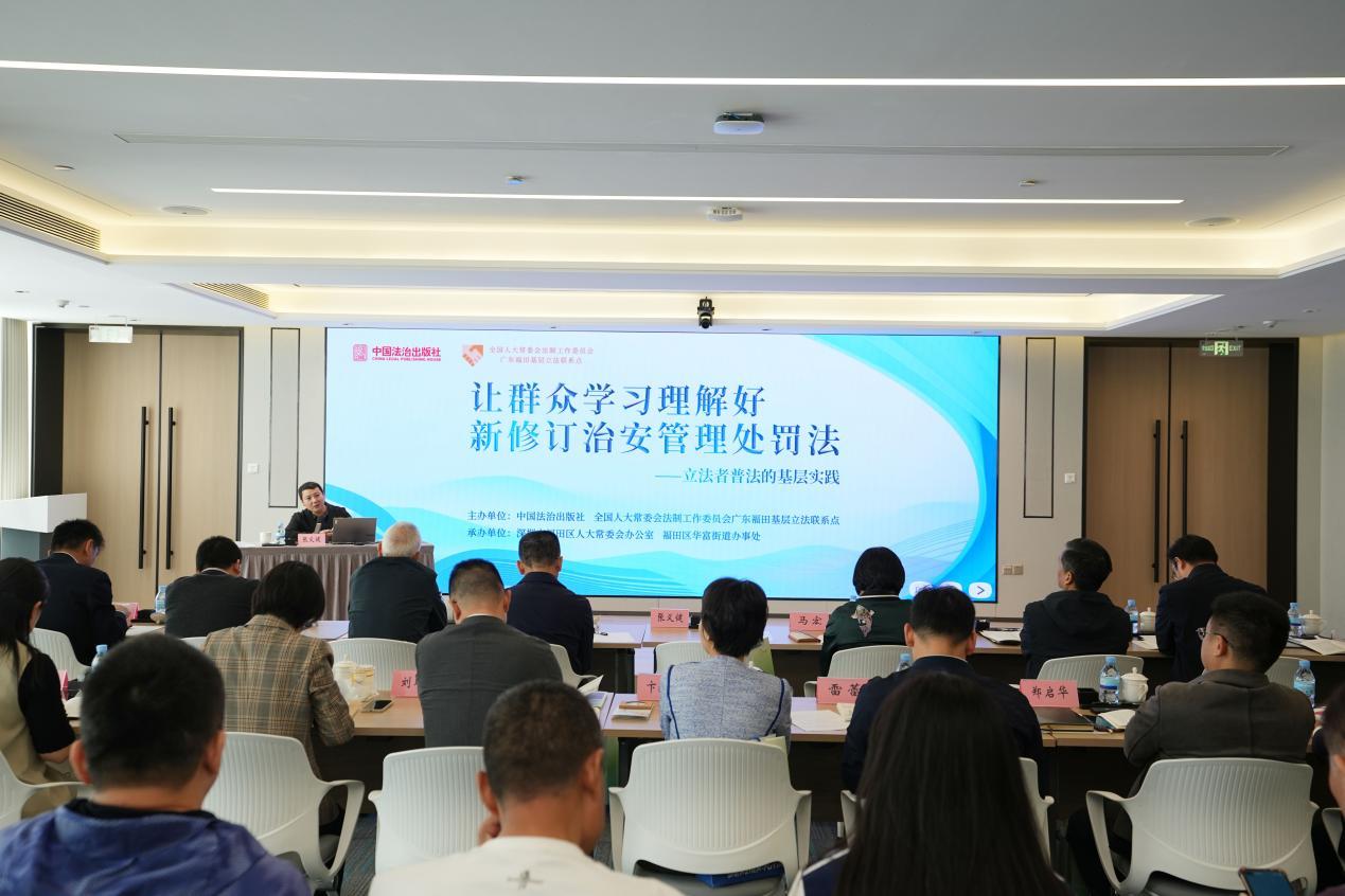 作为我国经济特区城市中首个、全市唯一的“国家级”基层立法联系点,全国人大常委会法工委广东福田基层立法联系点(以下简称福田基层立法联系点)依托“立法直通车”优势,联合中国法治出版社,邀请立法者直面群众,解读明年将施行的新《治安管理处罚法》,标志着“立法者普法”这一基层实践新模式在深圳正式落地。