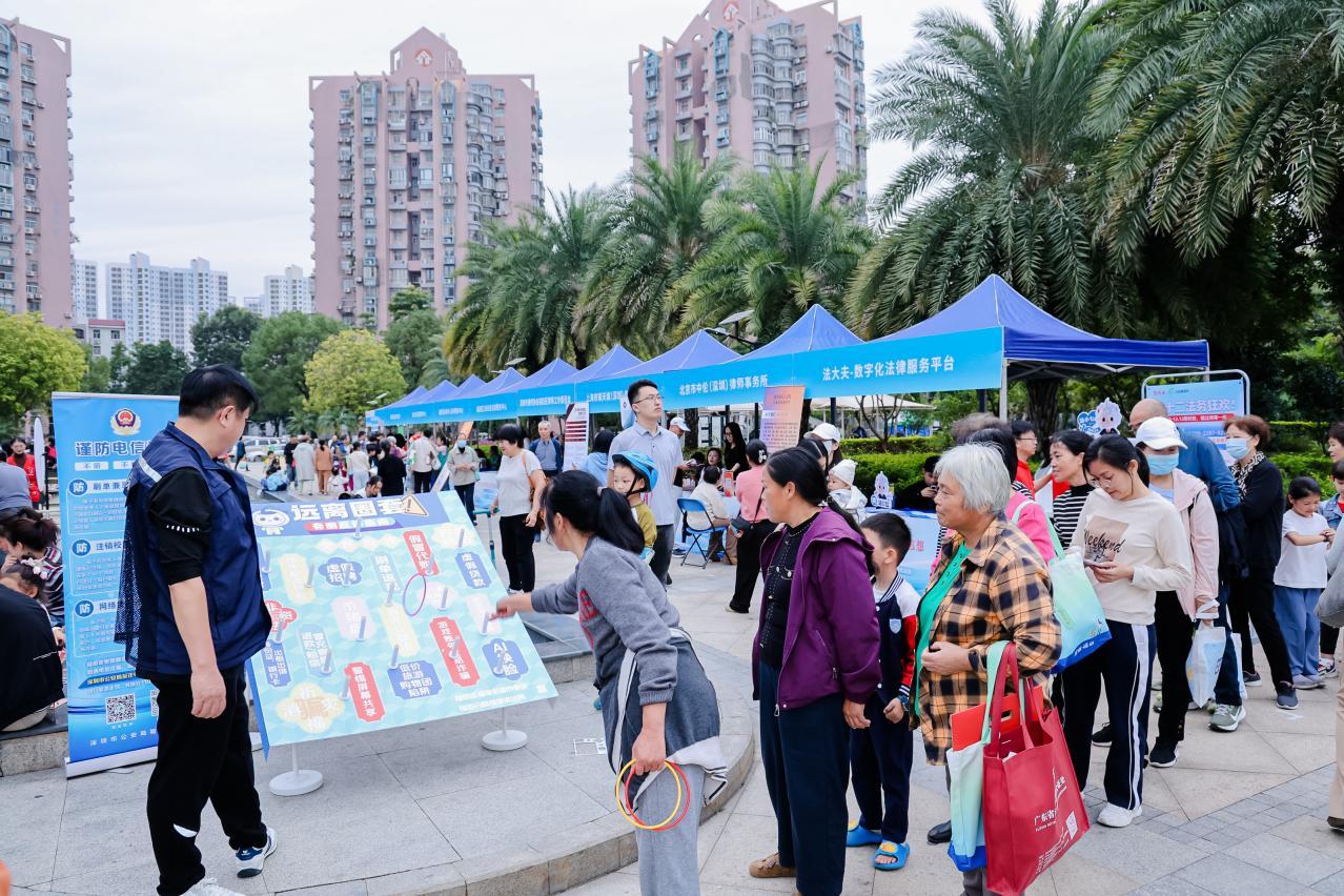 法治市集热闹非凡,汇聚了福田区法院、检察院、公安分局、河套福保立法联系点、福保街道办事处及各社区等24家机构,形成全链条法律服务矩阵。市民手持宣传册穿梭于各个摊位,有的咨询物业纠纷,有的了解反诈知识,有的为孩子询问校园安全权益。“没想到逛个市集,就把困扰好几个月的劳务纠纷搞明白了!”一位群众连连道谢。