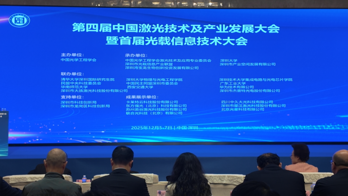 12月6日上午,第四届中国激光技术及产业发展大会暨首届光载信息技术大会在深圳市龙岗区珠江皇冠假日酒店隆重开幕。来自全国300余位激光与光电子领域专家、企业代表齐聚龙岗,共话“十五五”背景下激光制造、光载信息等前沿赛道的新机遇。中国光学工程学会,深圳市及龙岗区政府、政协等相关领导,国内部分高校领导、专家出席大会。