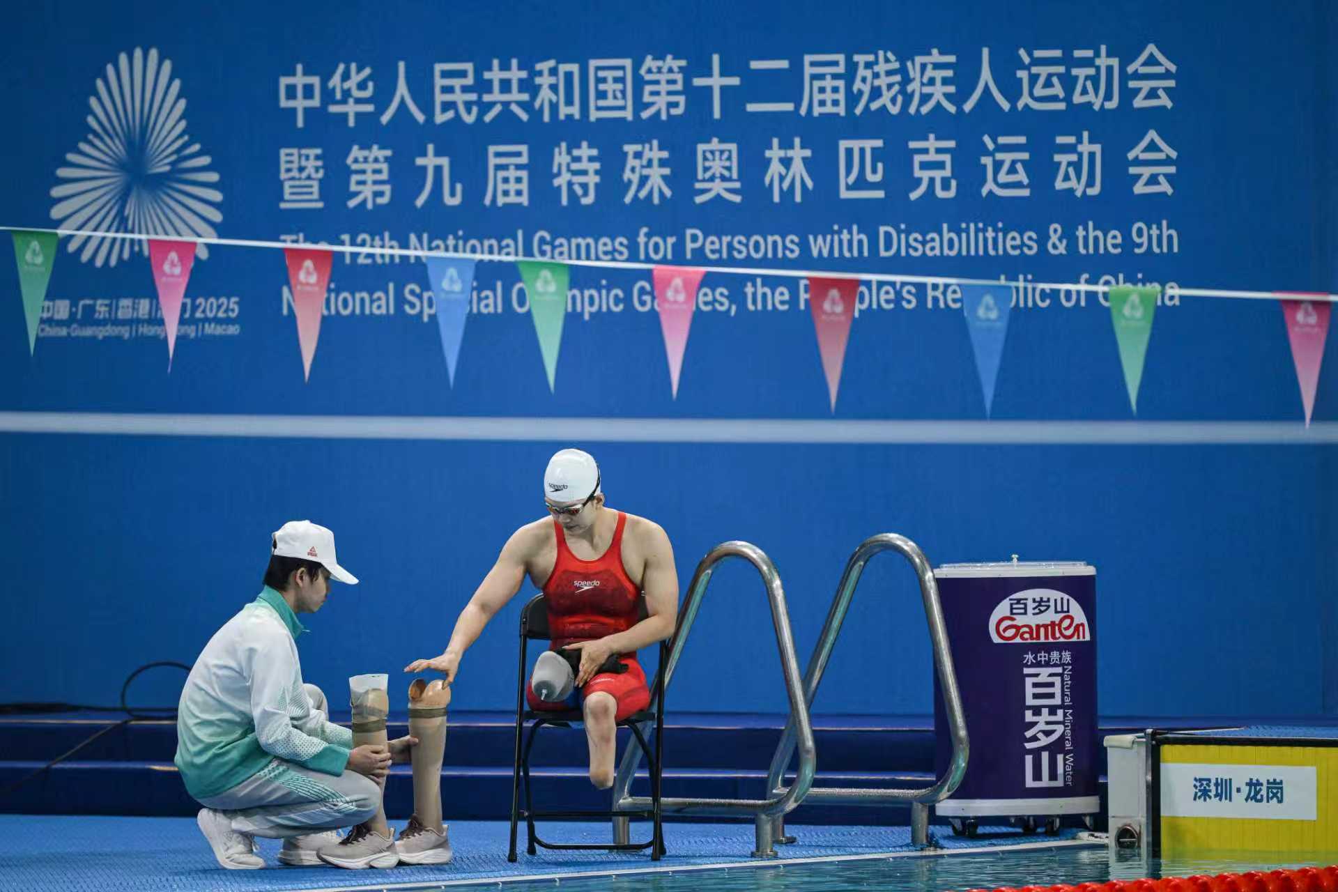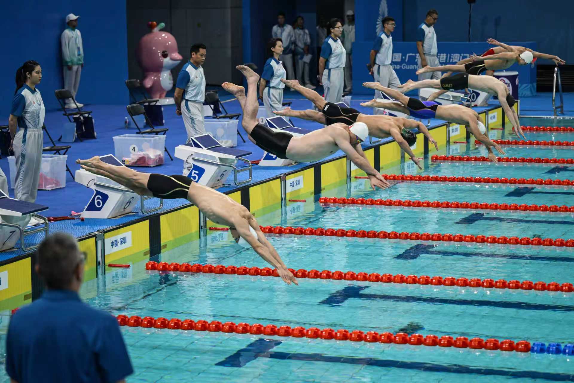 残特奥会第二个比赛日的泳池赛场高潮迭起。广东一团黄学亮在男子100米自由泳S13级(视力障碍)决赛中,依靠后半程强势冲刺,以0.18秒的微弱优势险胜湖南队刘鹏思,一举打破全国纪录并摘得金牌。另外一位广东一团选手黄健秋则以1分05秒85的成绩刷新女子100米自由泳S13级全国纪录,斩获个人本届赛事第二金。