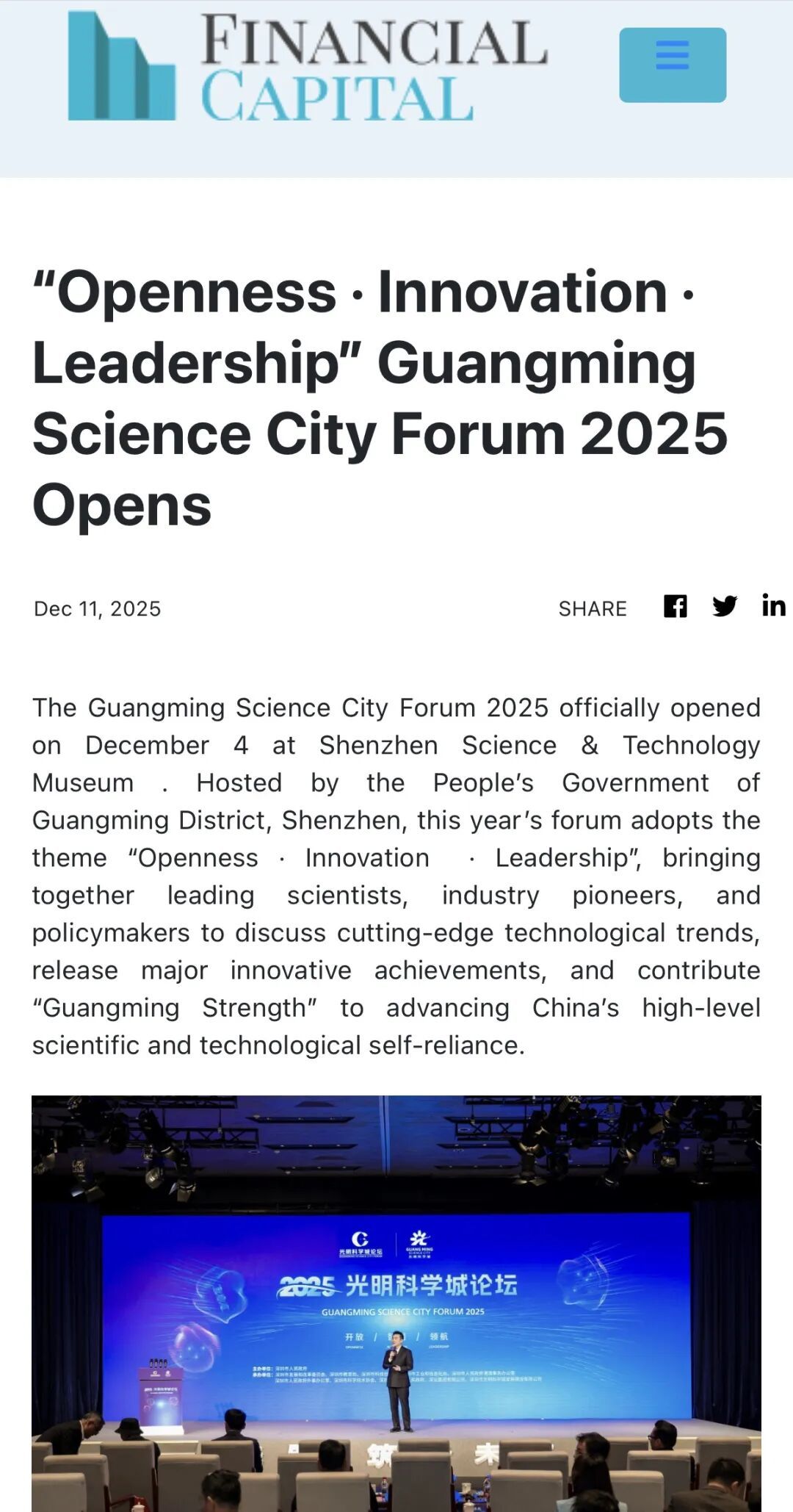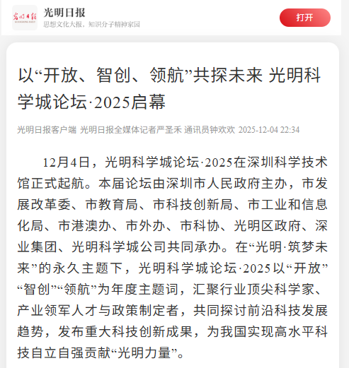 本次论坛集中呈现了高端思想的深度碰撞与光明科学城的创新实践,既彰显了光明区高质量发展的活力与优势,也清晰勾勒出建设世界一流科学城的宏伟蓝图。