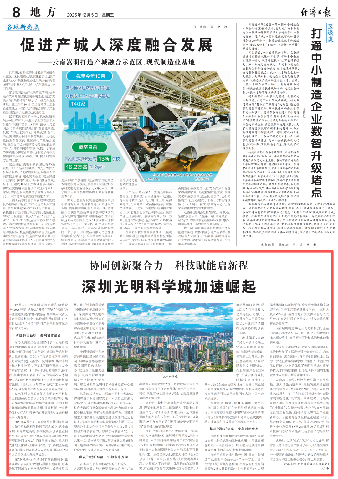 随着60位院士先后入驻、超过3000名高层次人才汇聚,以及150余支高水平创新团队扎根于此,光明科学城已形成一片“群星璀璨”的创新生态。这些智力资源不仅夯实了基础研究的根基,更通过紧密的产学研协作,持续推动脑科学、合成生物、新材料等前沿领域的原创突破与技术转化,为科学城建设注入源源不断的核心驱动力。