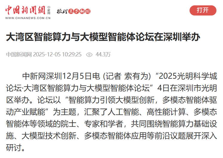 大湾区智能算力与大模型智能体论坛在深圳举办